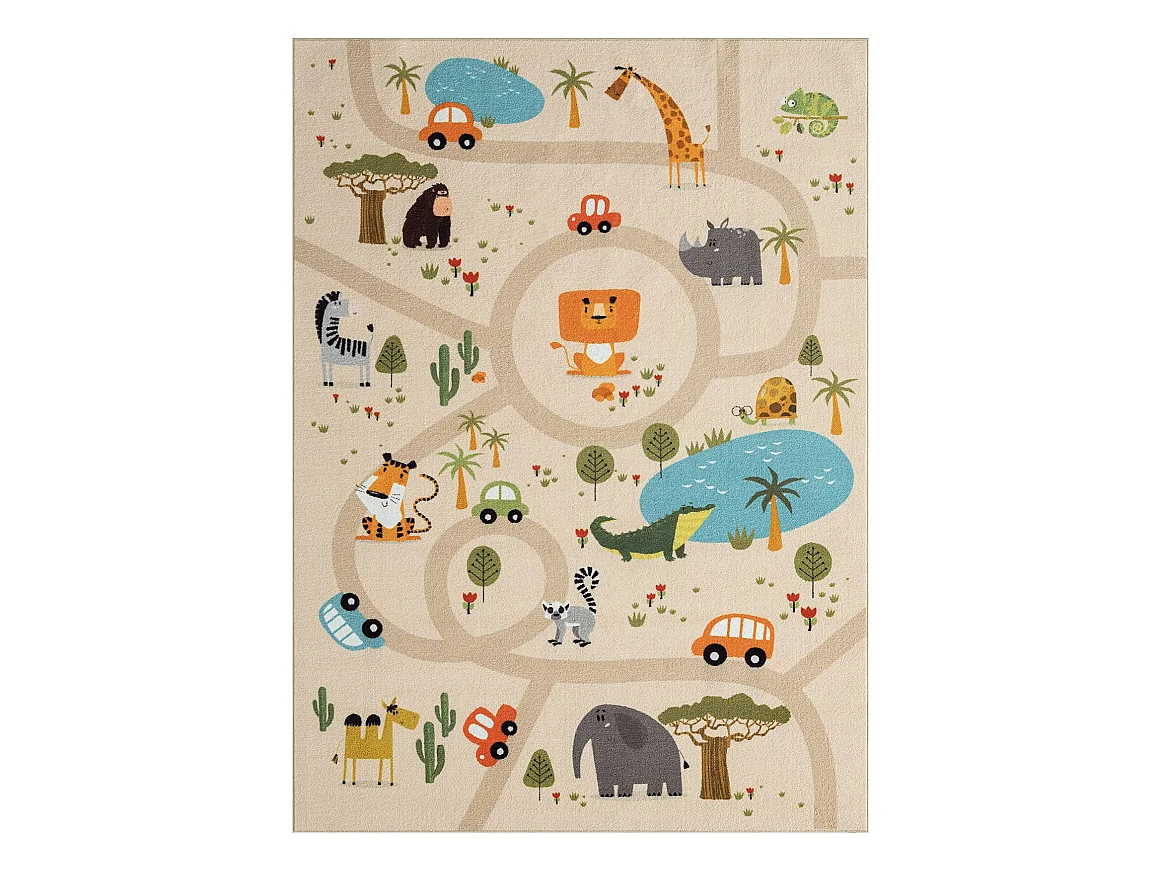 Tapis Jungle Kids Chambre Enfant 3d Résistant - Beige - 200x290 cm