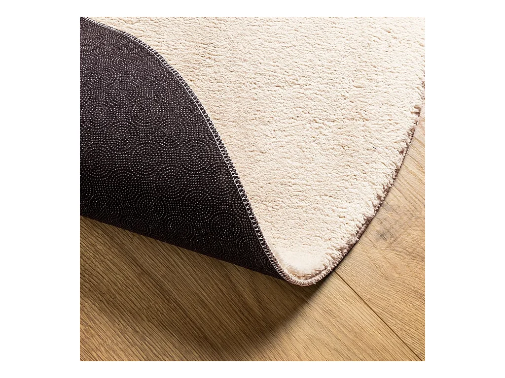 Tapis HUARTE à poils courts doux et lavable crème Ø 120 cm QBH90066