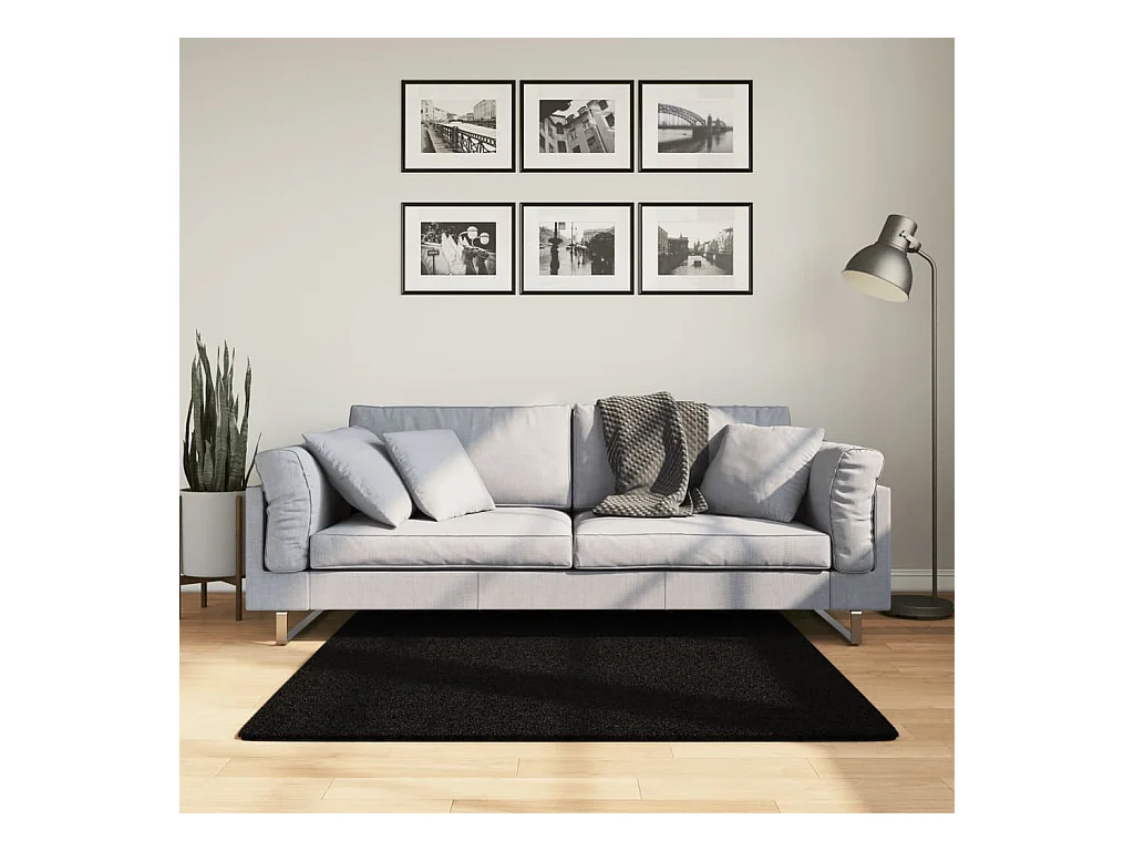 Tapis shaggy à poils longs NAVARRA noir 120x120 cm polyester