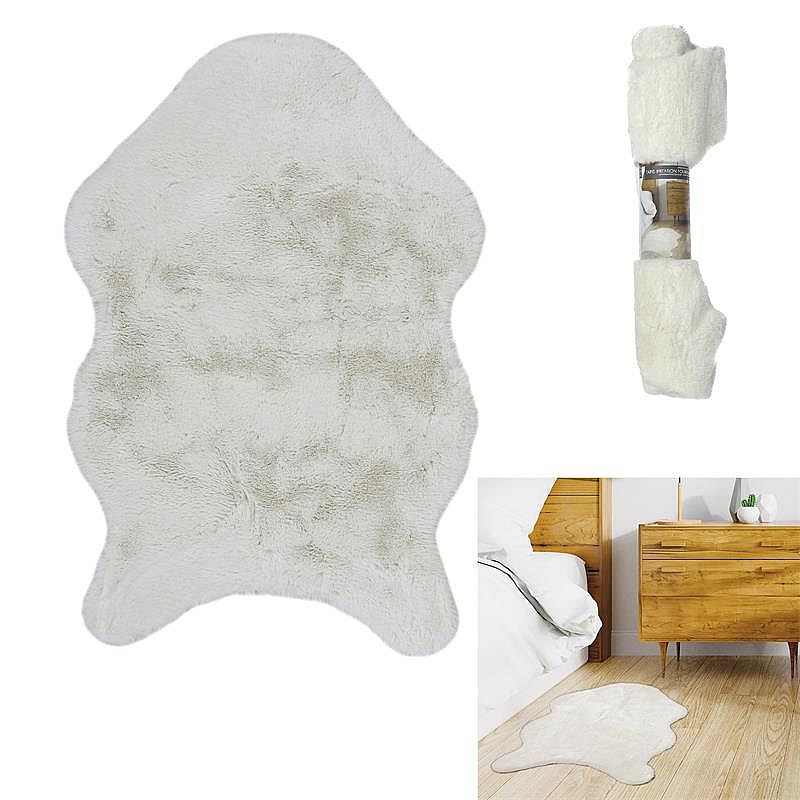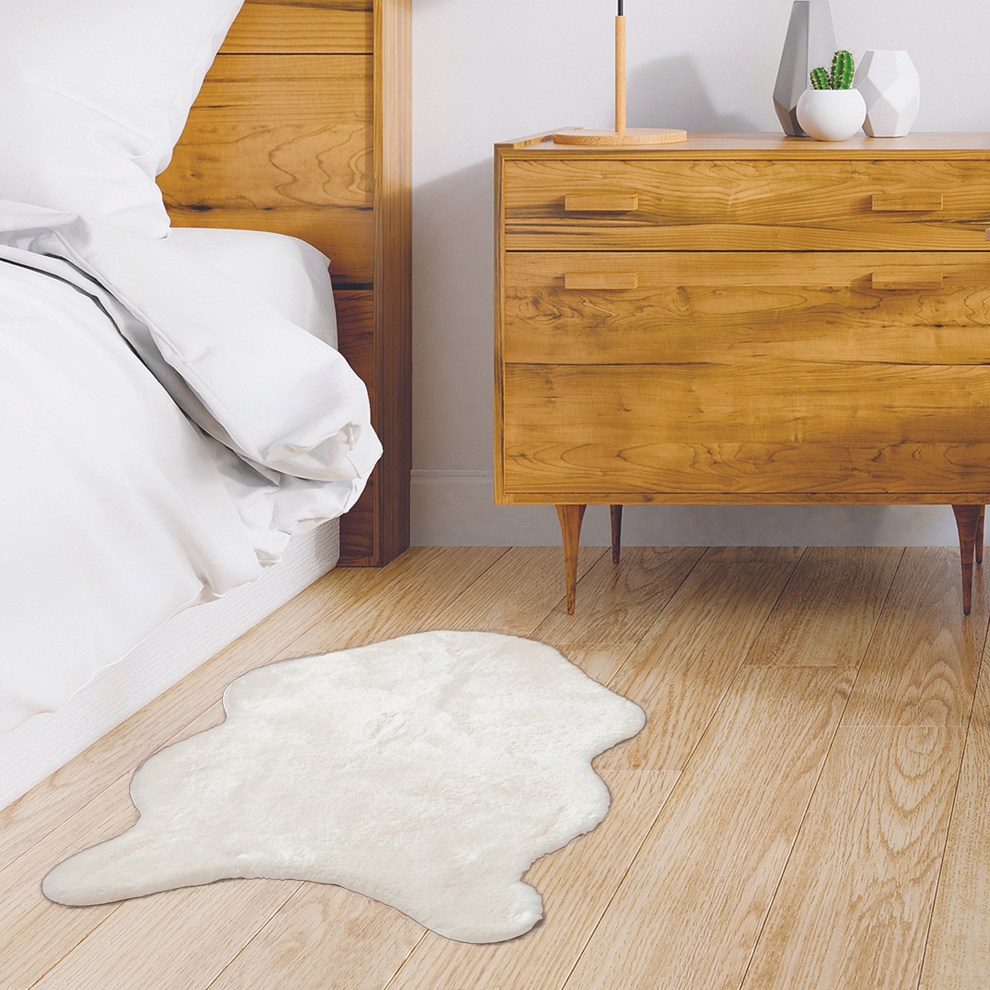 Tapis de Salon Asymétrique Lambskin, Blanc, 85x50x6,5 cm, Epikasa