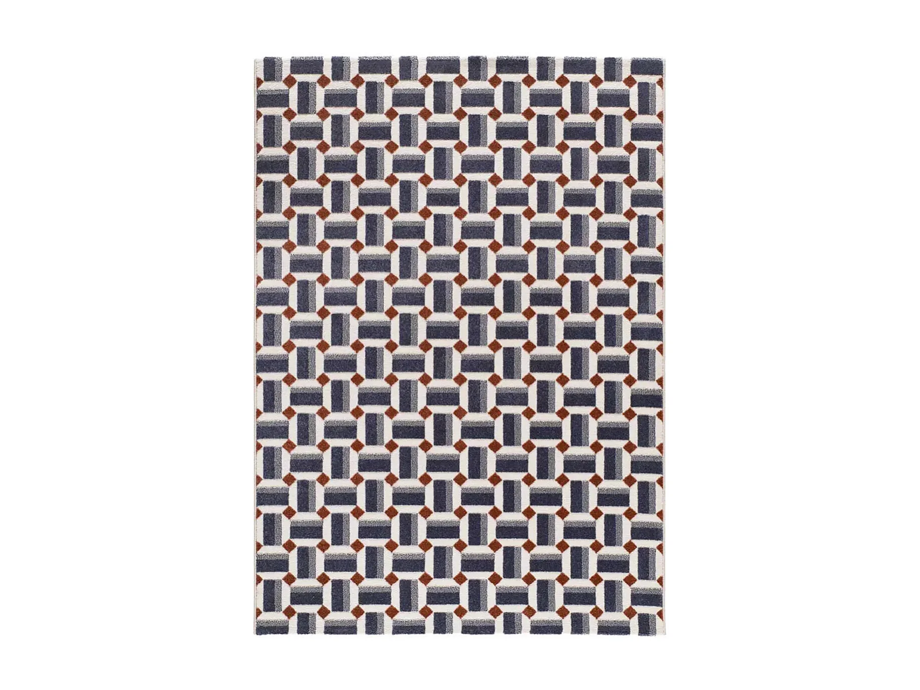 Tapis intérieur - géométrique avec relief - bleu / blanc - 160 x 230 cm - AMARA