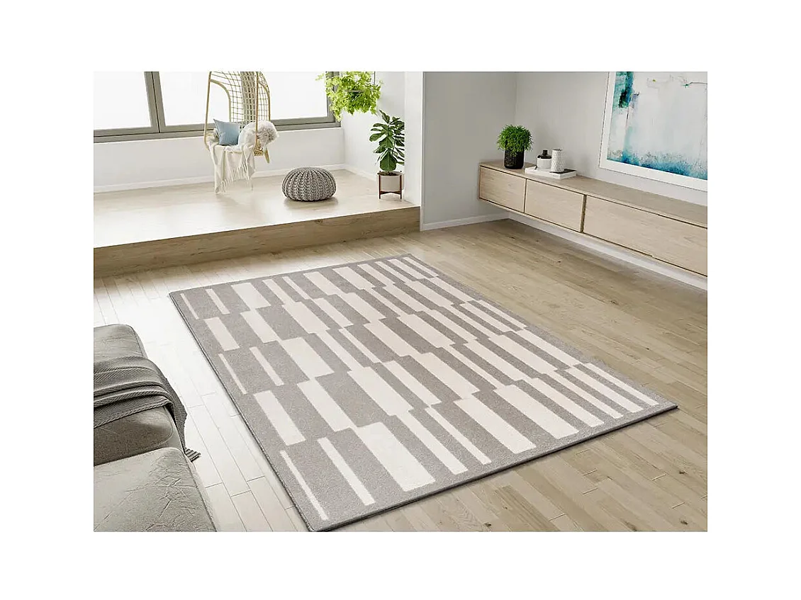 Tapis intérieur - géométrique avec relief - gris / blanc - 133 x 190 cm - BARESA