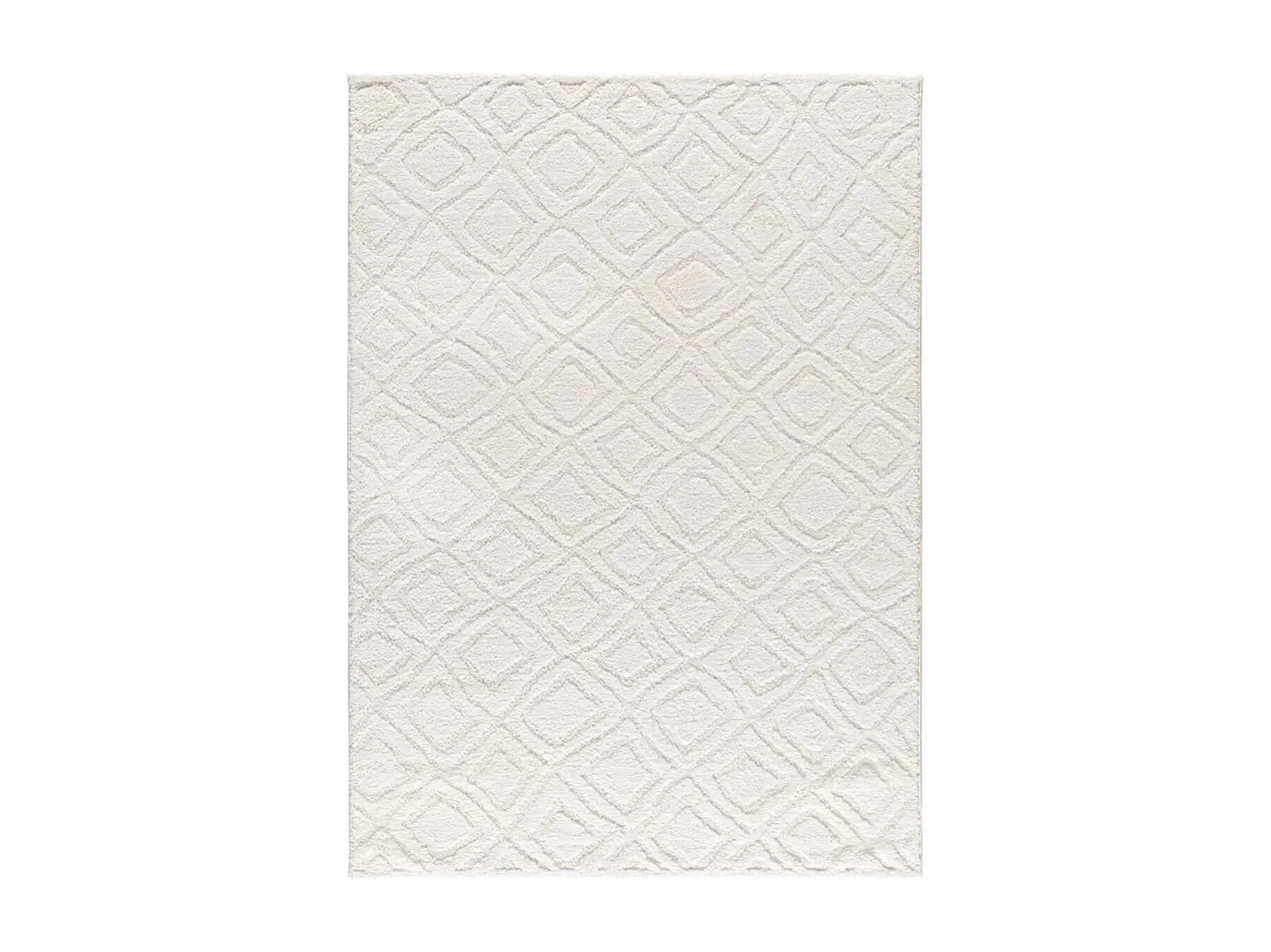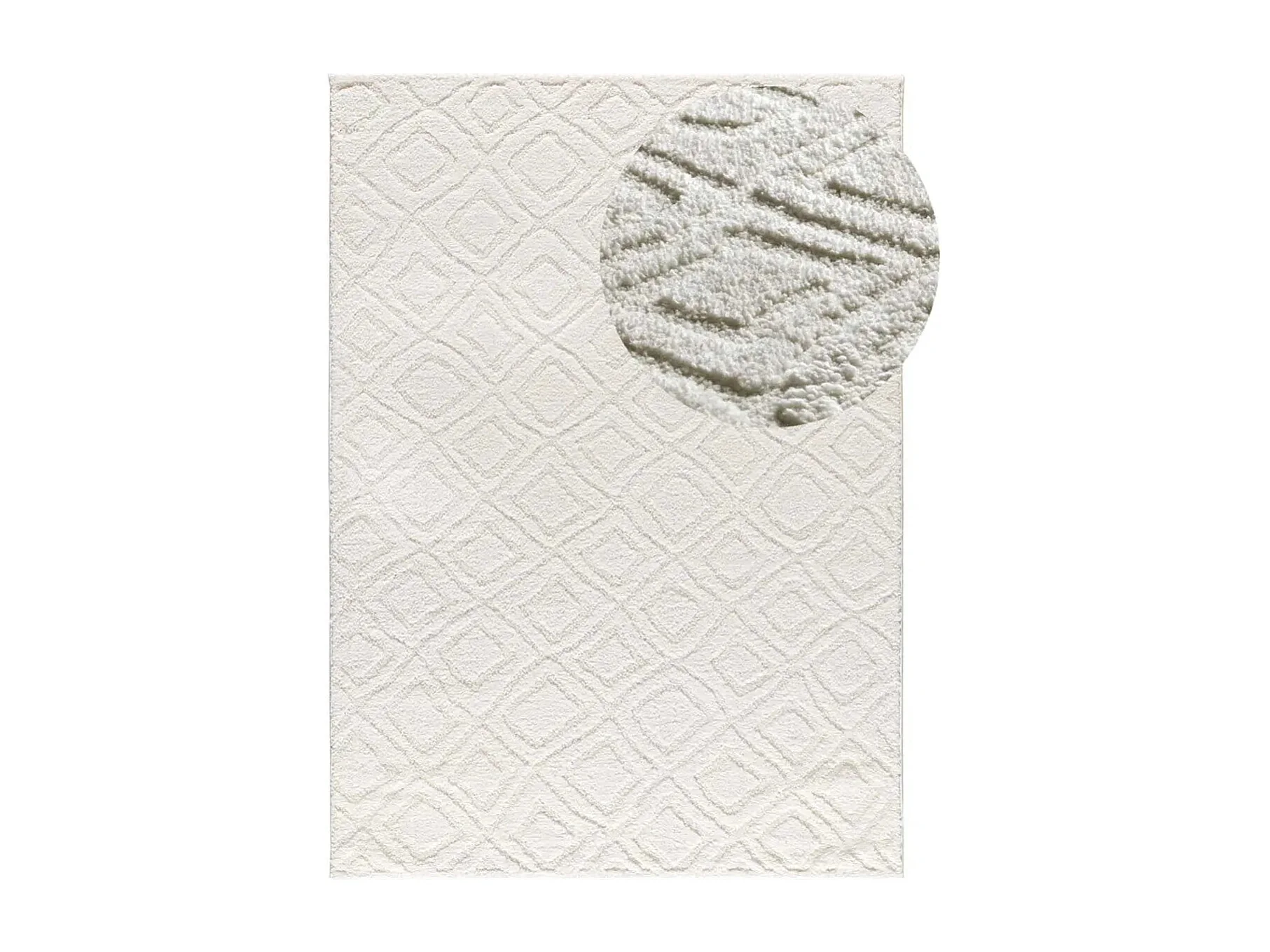 Tapis intérieur - géométrique avec relief - blanc - 133 x 190 cm - FLORA