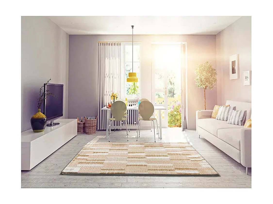Tapis intérieur - shaggy géométrique - beige - 133 x 190 cm - SERENE TERRA