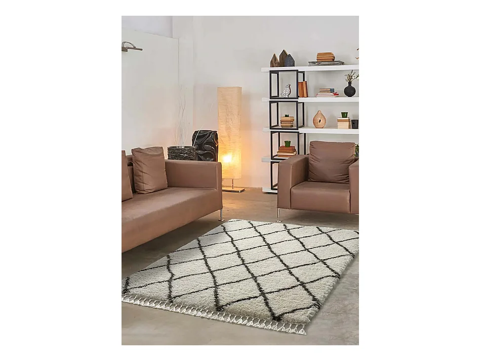 Tapis shaggy à poils longs microfibre - 120 x 170 cm - Blanc cassé - HARVEY