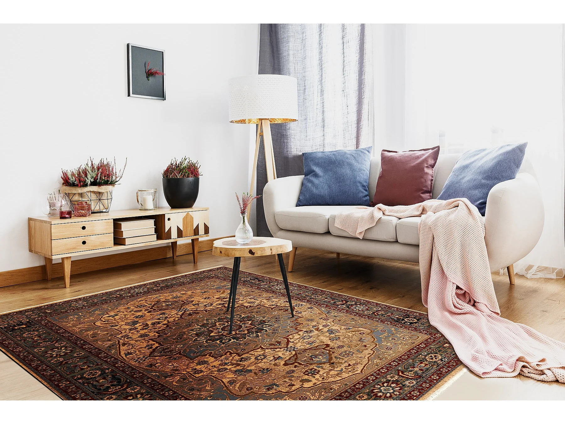 Tapis KESHAN franges, Rosette oriental 7519/53555 beige / bleu foncé 160x230 cm