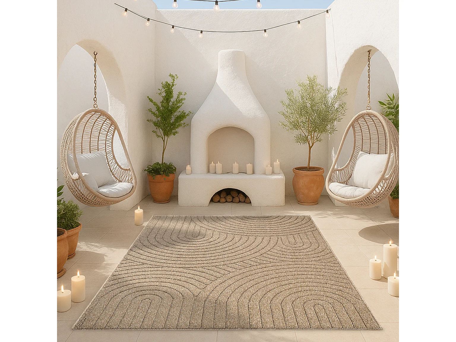 Tapis Kos extérieur moderne arc, Nature, 160 x 220 cm
