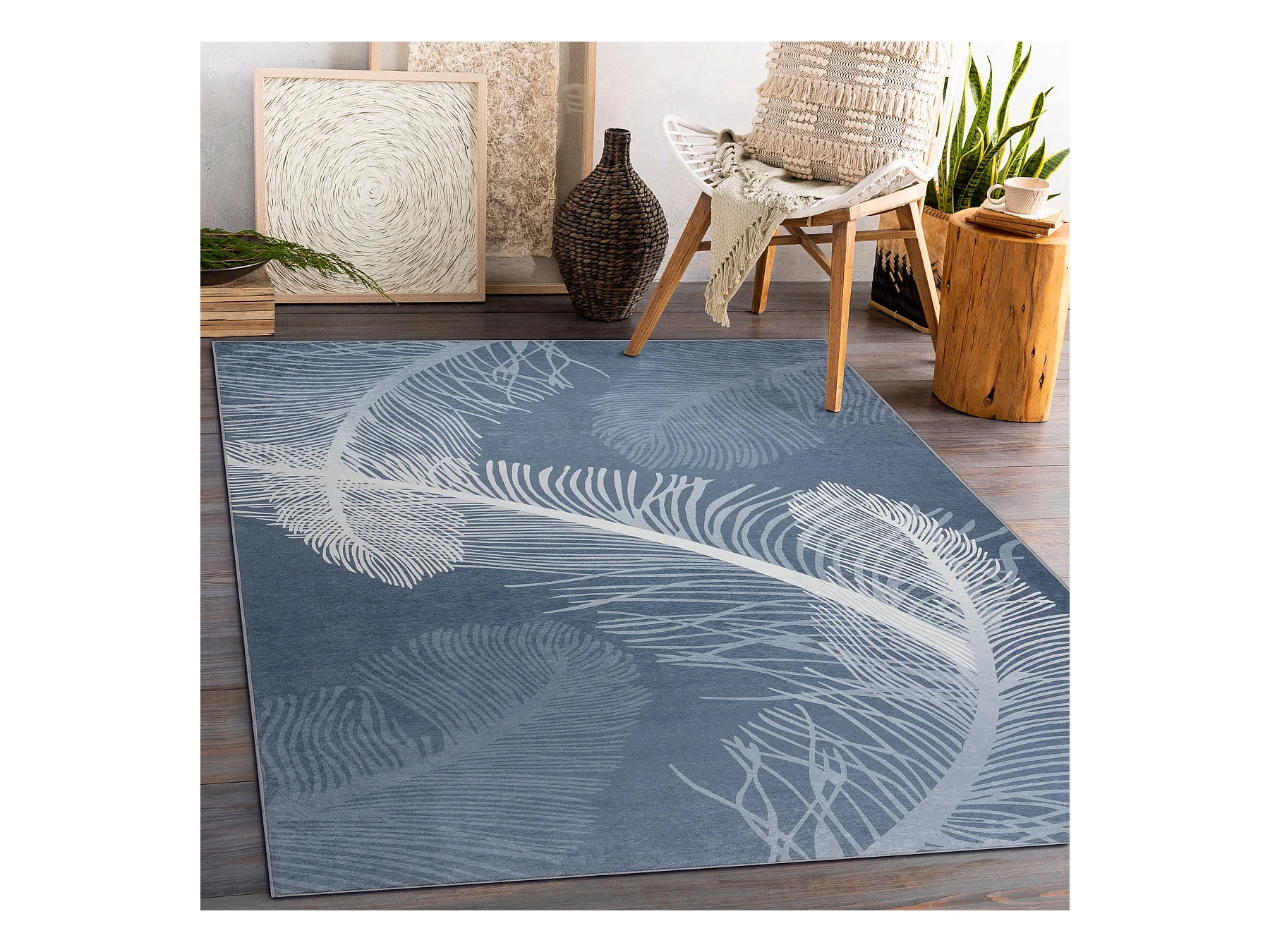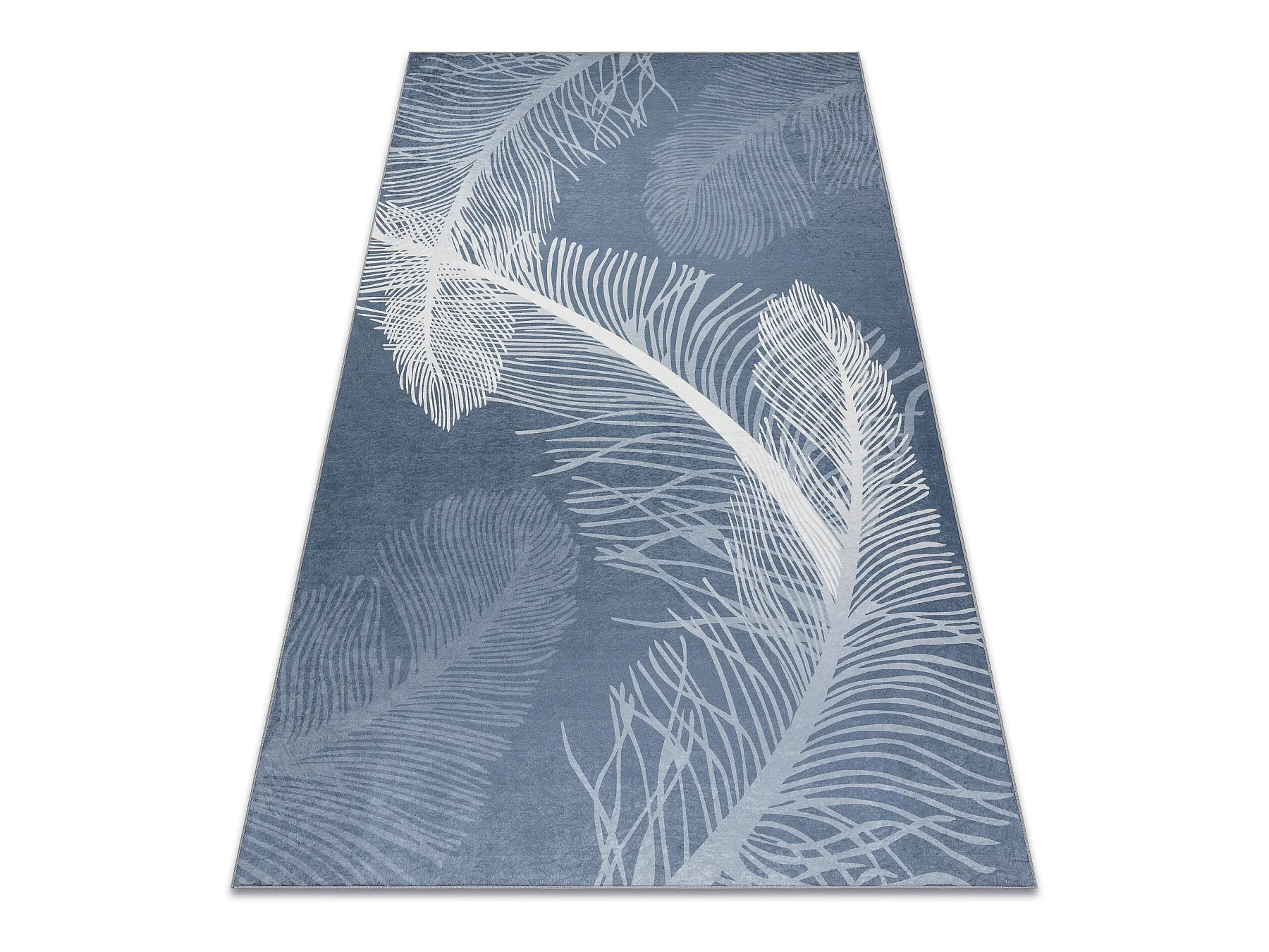 Tapis lavable ANDRE 1148 Plumes antidérapant - bleu 80x150 cm