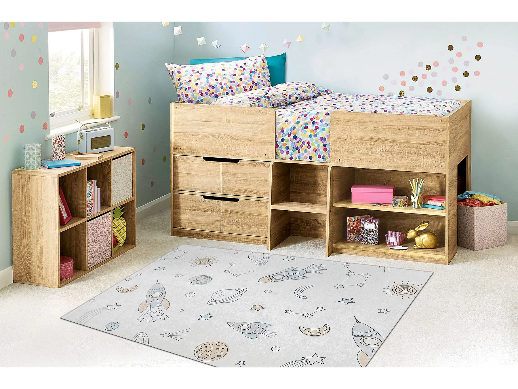 Tapis lavable BAMBINO 1278 Fusée spatiale pour les enfants antidérap 160x220 cm