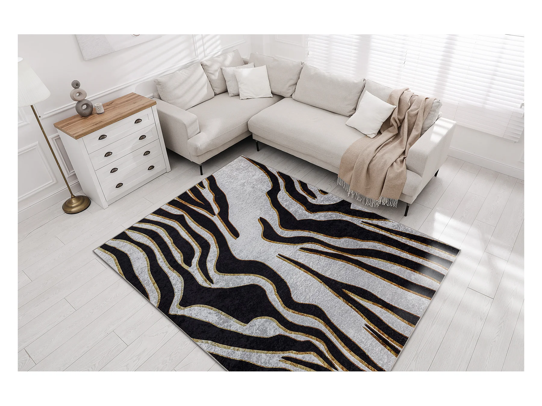 Tapis lavable MIRO 52002.807 Motif Zèbre antidérapant - crème / noi 140x190 cm
