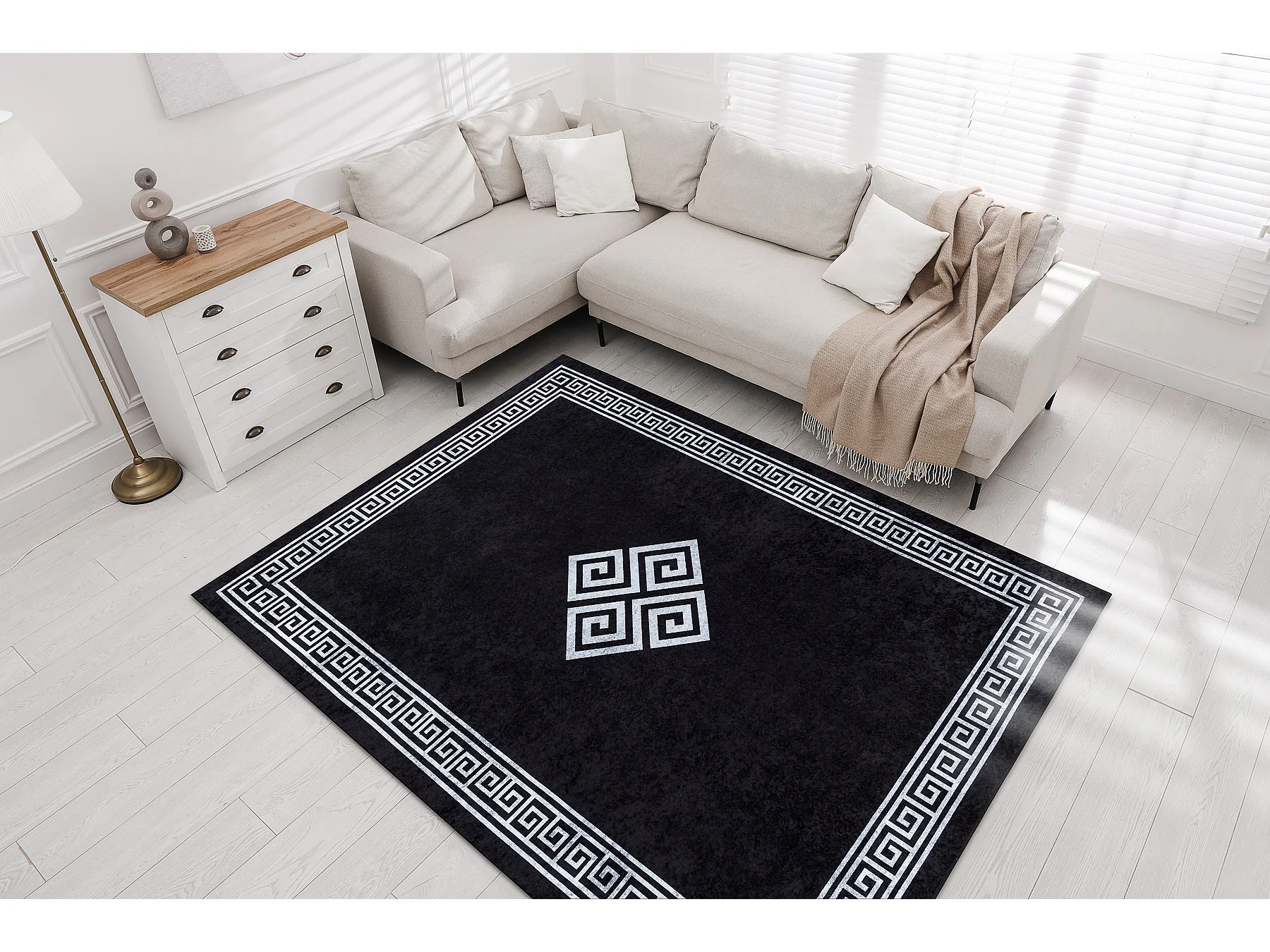 Tapis lavable MIRO 52071.804 Cadre, grec antidérapant - noir / blanc 160x220 cm