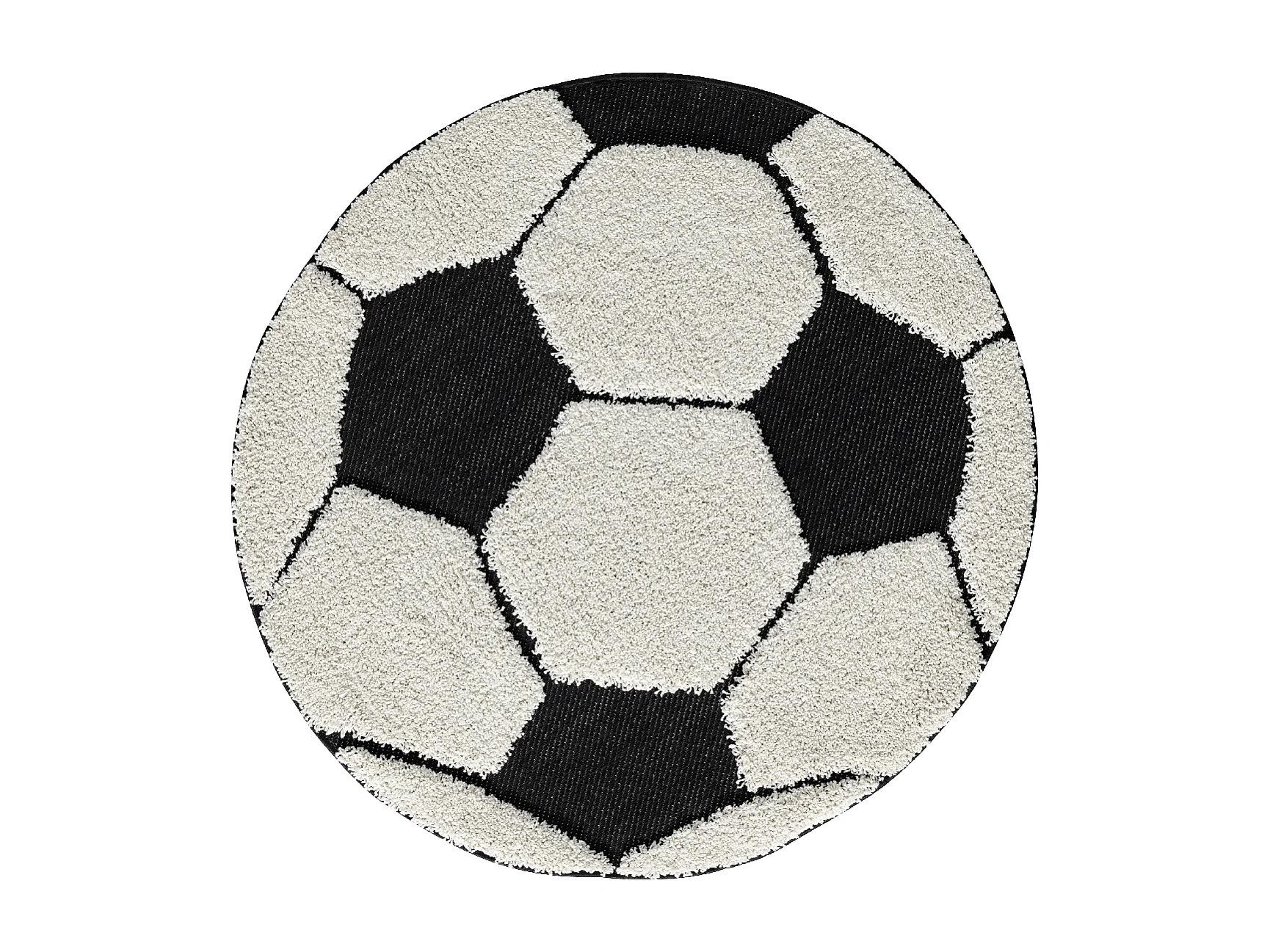 Tapis Lou Enfant Football - Noir Blanc - 80 cm Ronde