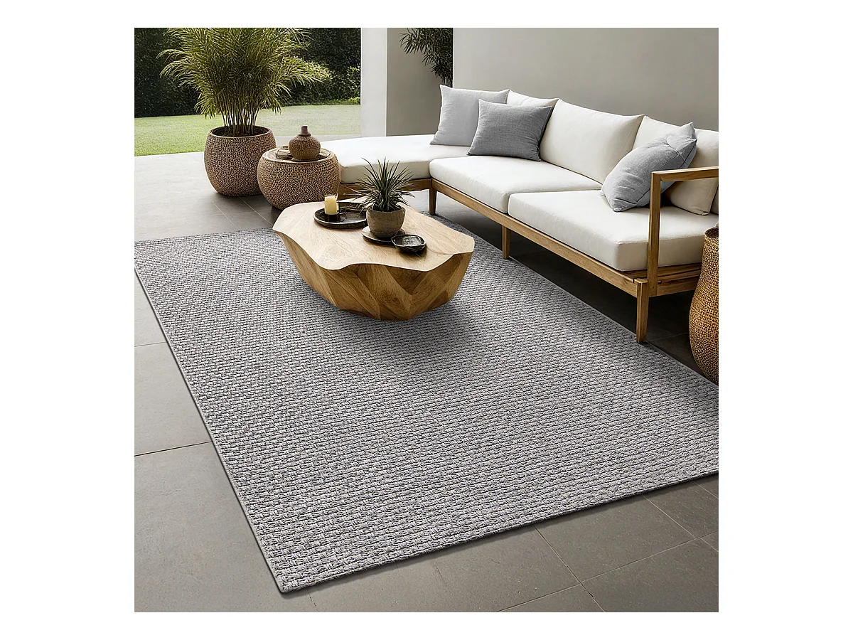 Tapis intérieur extérieur design uni - Gris - 140 x 200 cm - CALGARY
