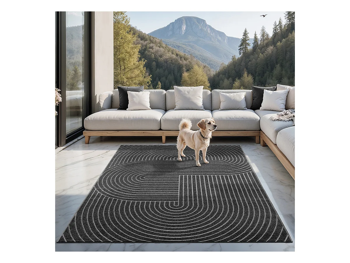Tapis d'Extérieur 160x244 - Anthracite - Tulum Symetry