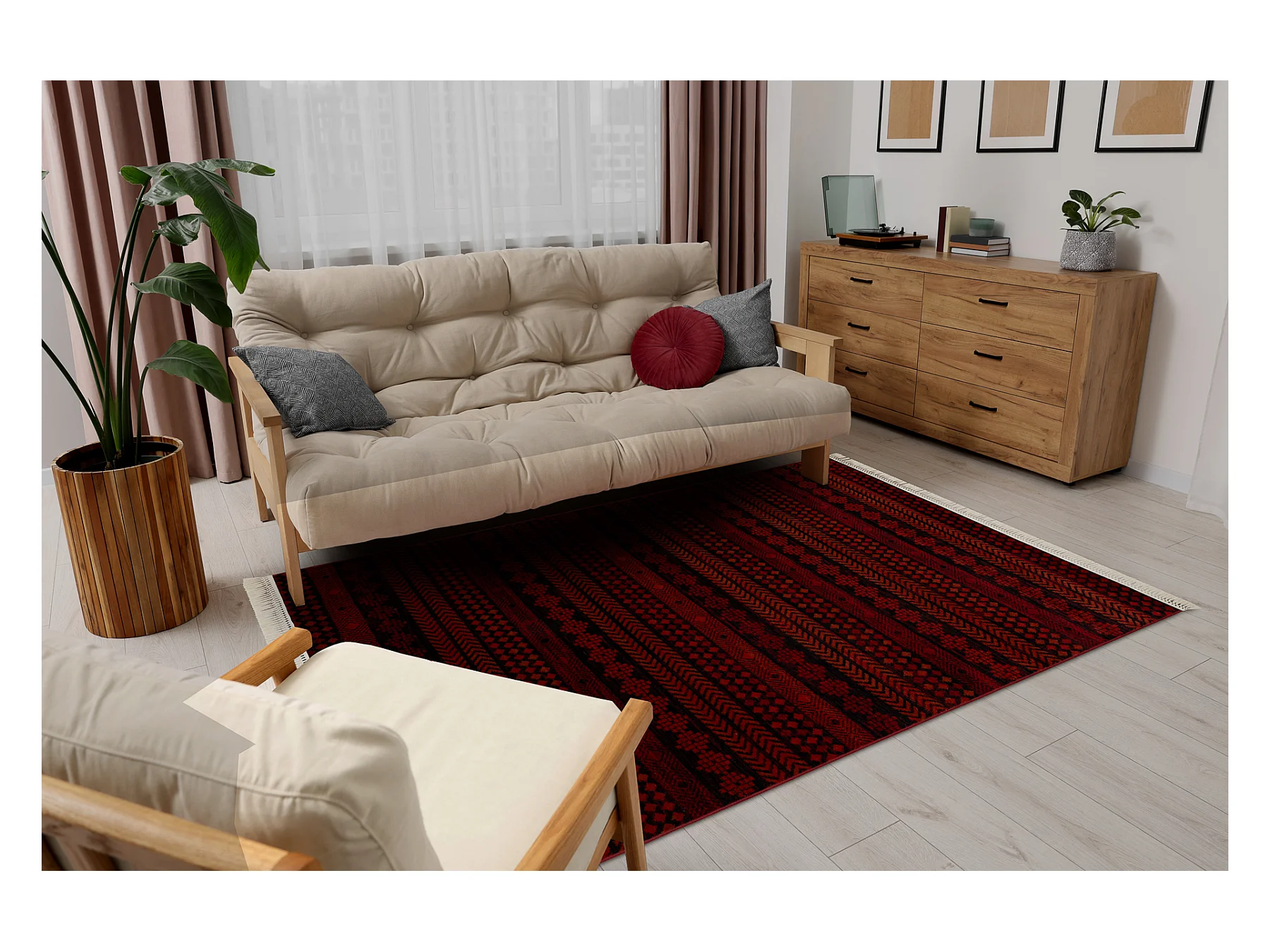 Tapis ORIENT 5820 bordeaux / noir Oriental, rayures à franges 300x400 cm