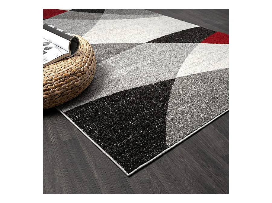 Tapis Pearl moderne salon découpe contour, Gris Rouge, 200 x 280 cm