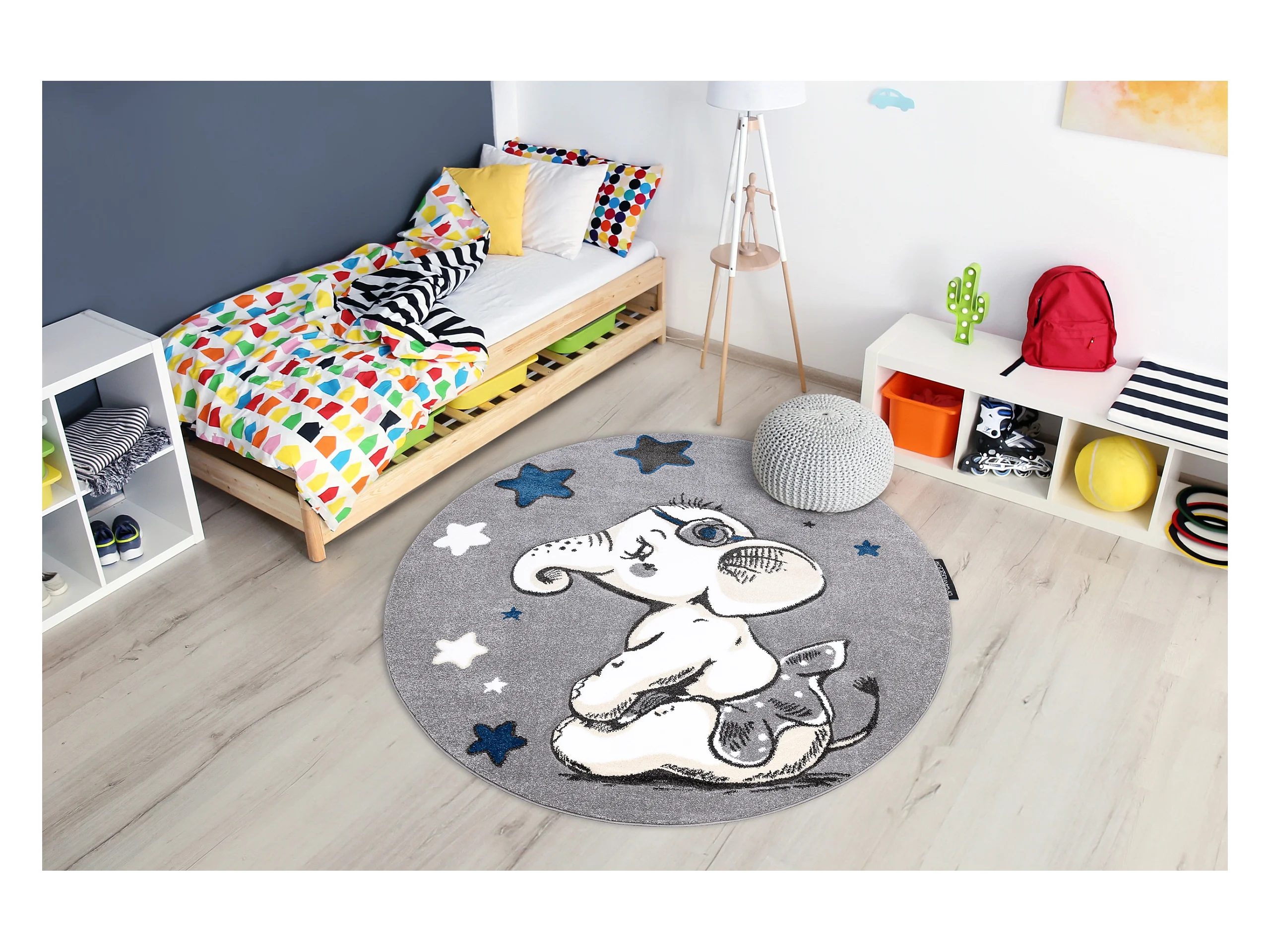 Tapis PETIT ELEPHANT L'ÉLÉPHANT ÉTOILE cercle gris cercle 140 cm