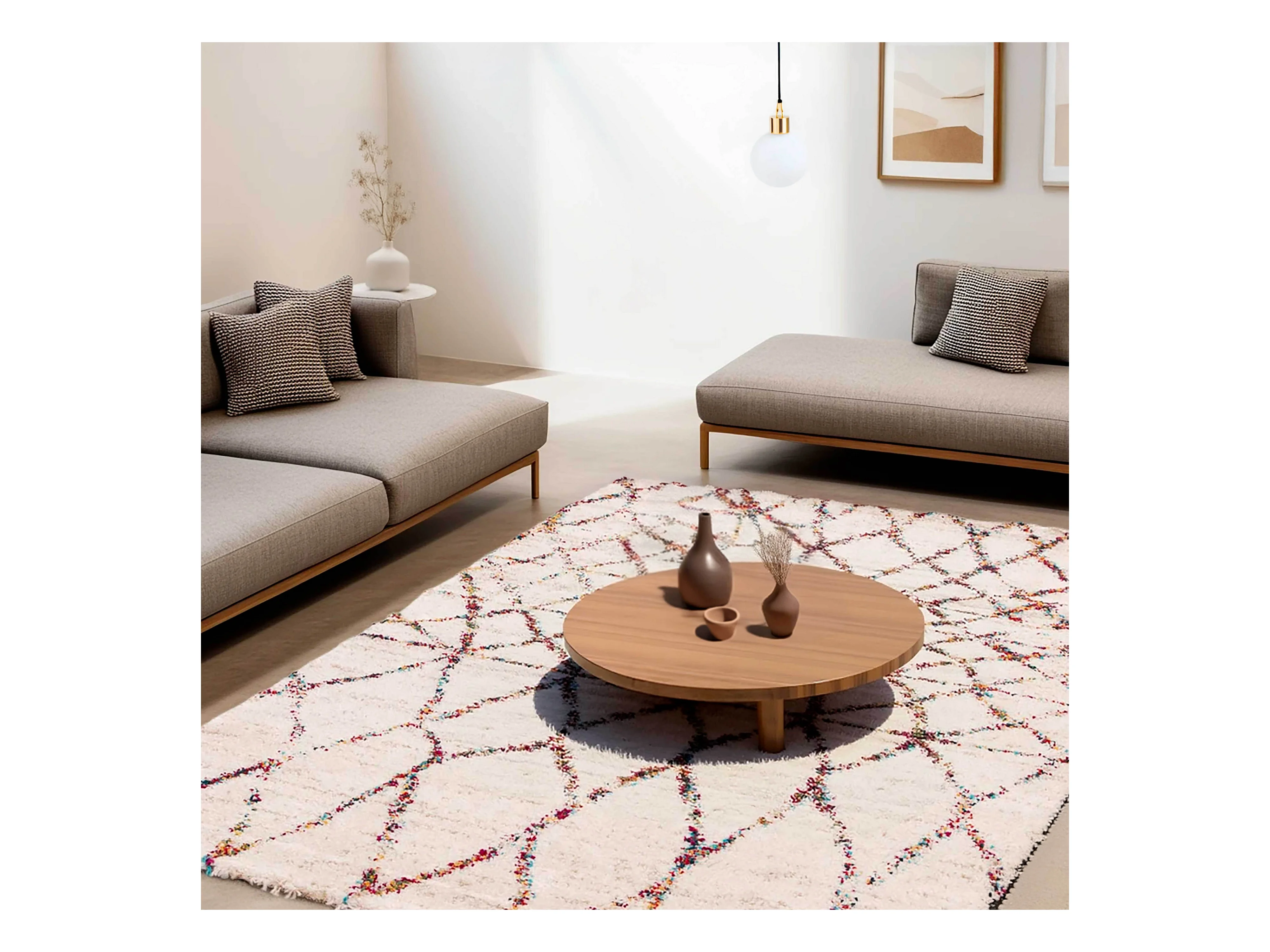 Tapis rectangulaire à poils longs motif ethnique beige 160x230 cm