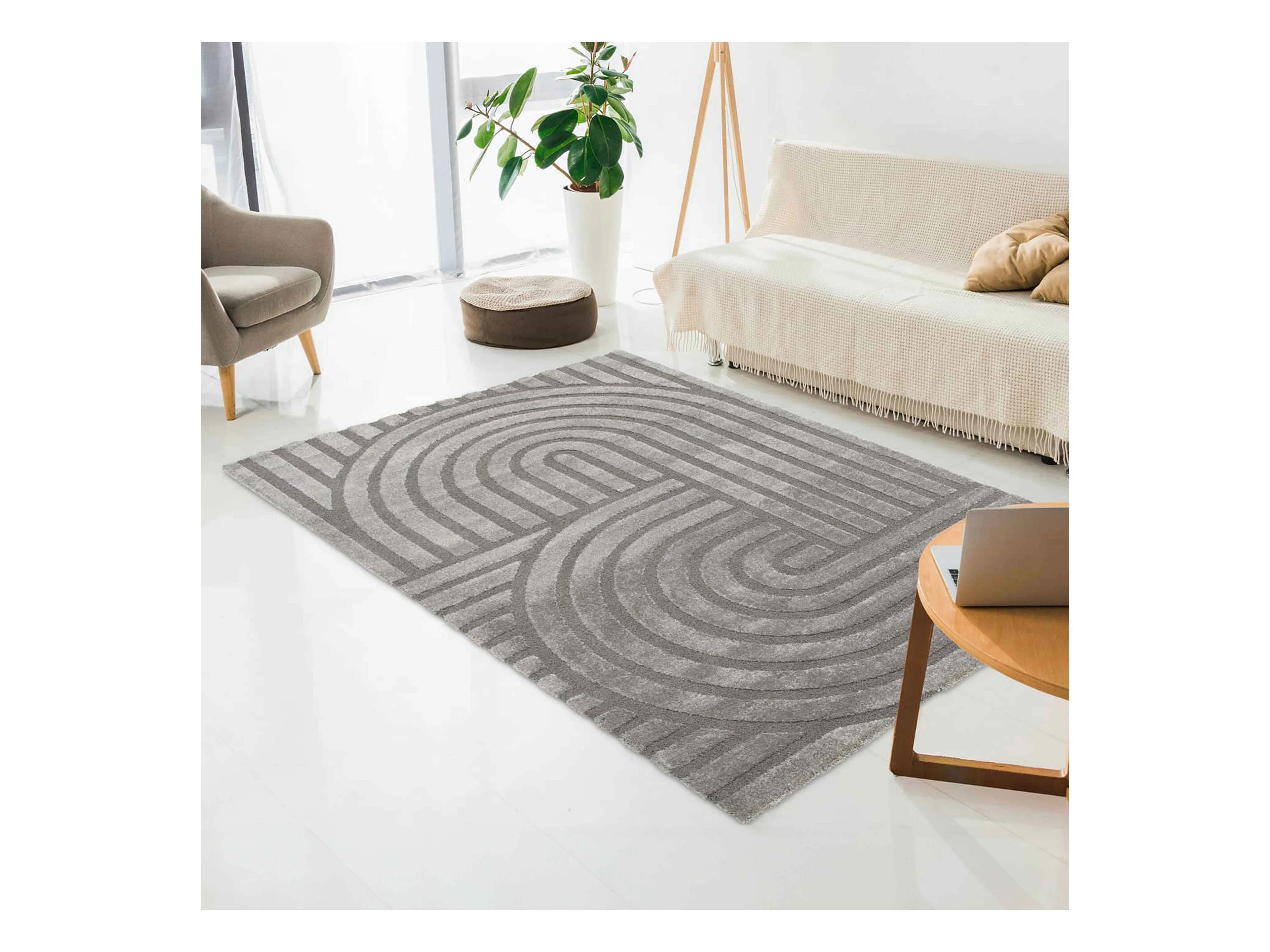 Tapis rectangulaire à poils ras motif contemporain gris 160 x 230 cm