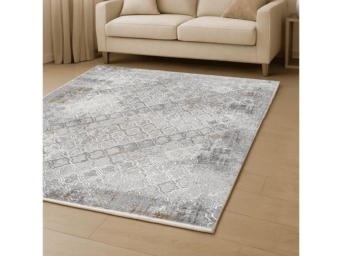 Tapis rectangulaire gris à motifs beiges et gris - VERONA