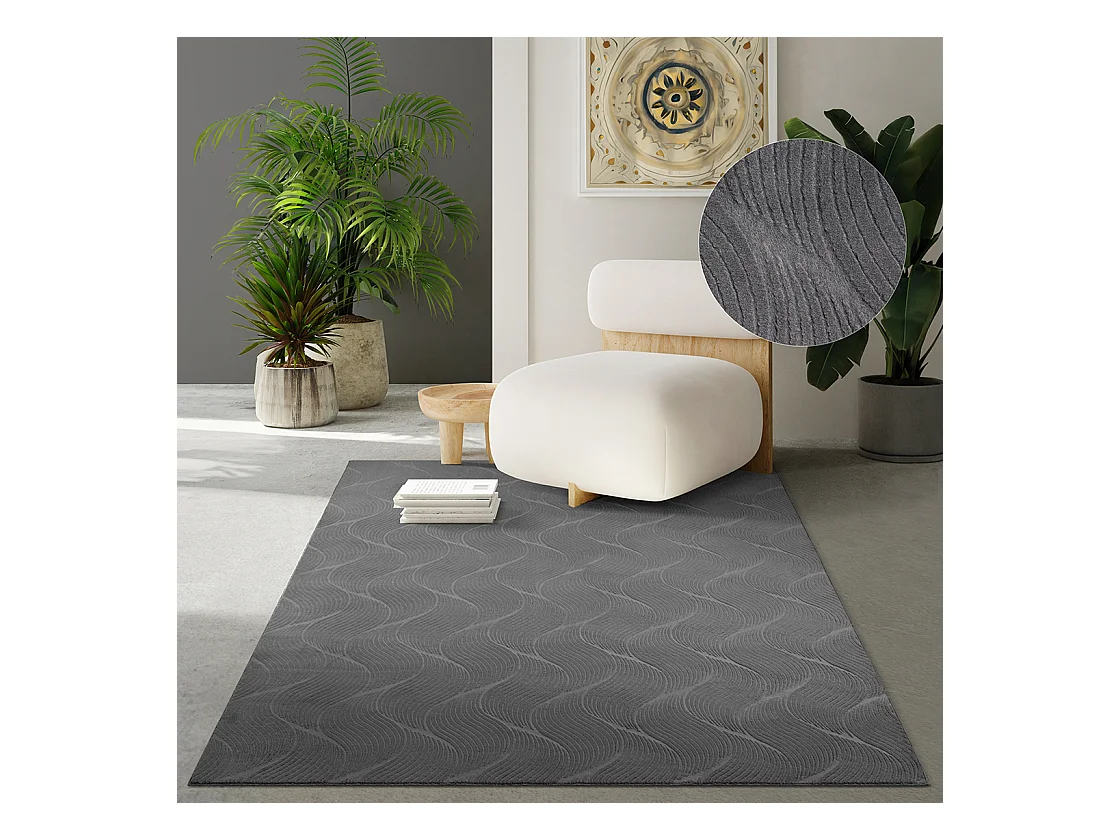 Tapis Rio salon antidérapant 3D, Anthracite, 80 x 300 cm