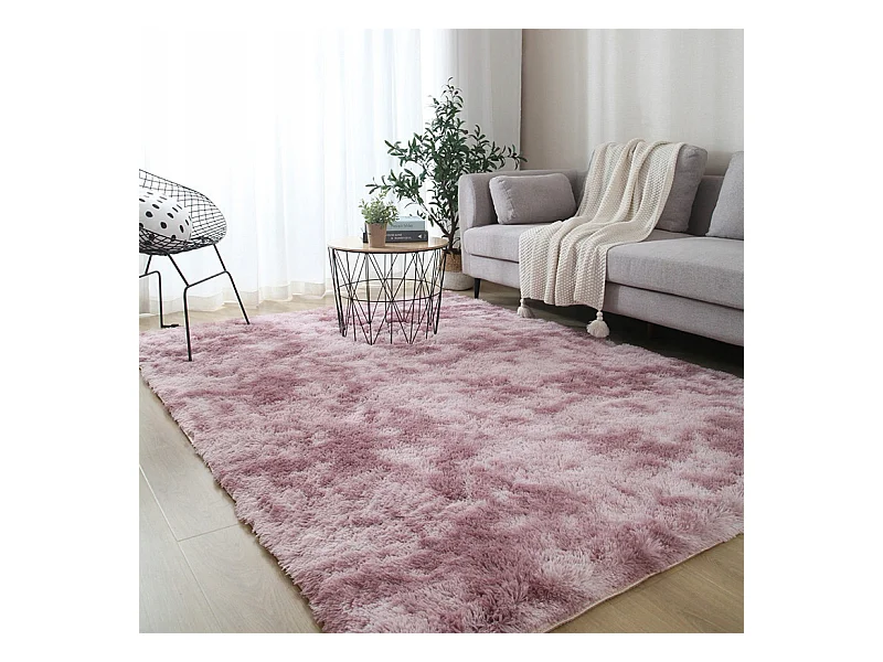 Tapis rose en peluche toute douce shaggy rabbit à poils longs 120 x 170 cm épais