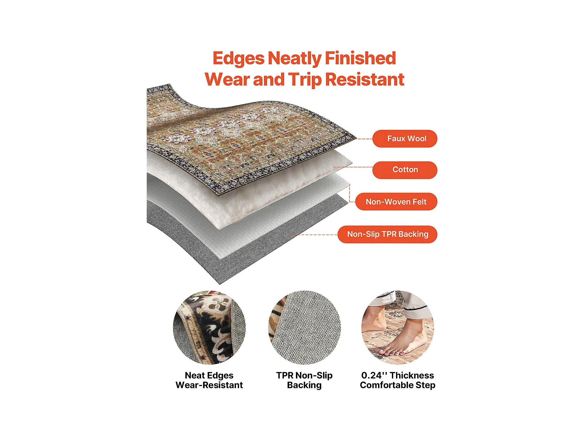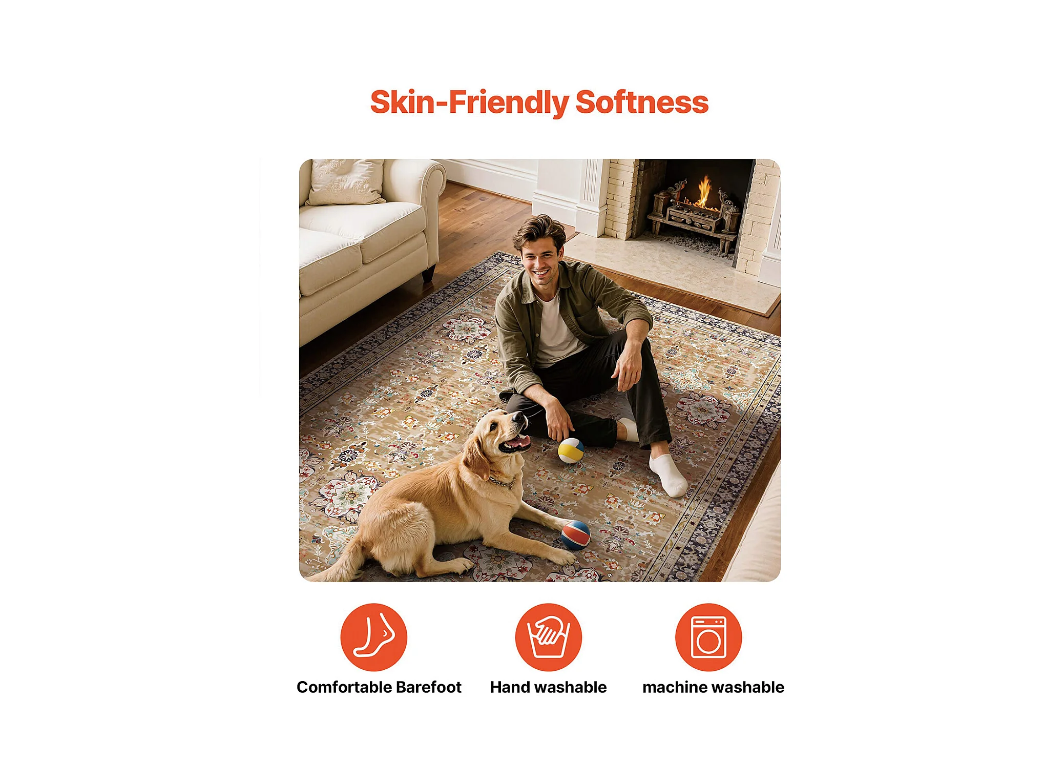 Tapis Salon SucceBuy, 1,8 x 2,7 m, Grand Tapis Chambre Lavable Antidérapant, Doux Confortable, Style Vintage, pour Chambre, Marron et Vert
