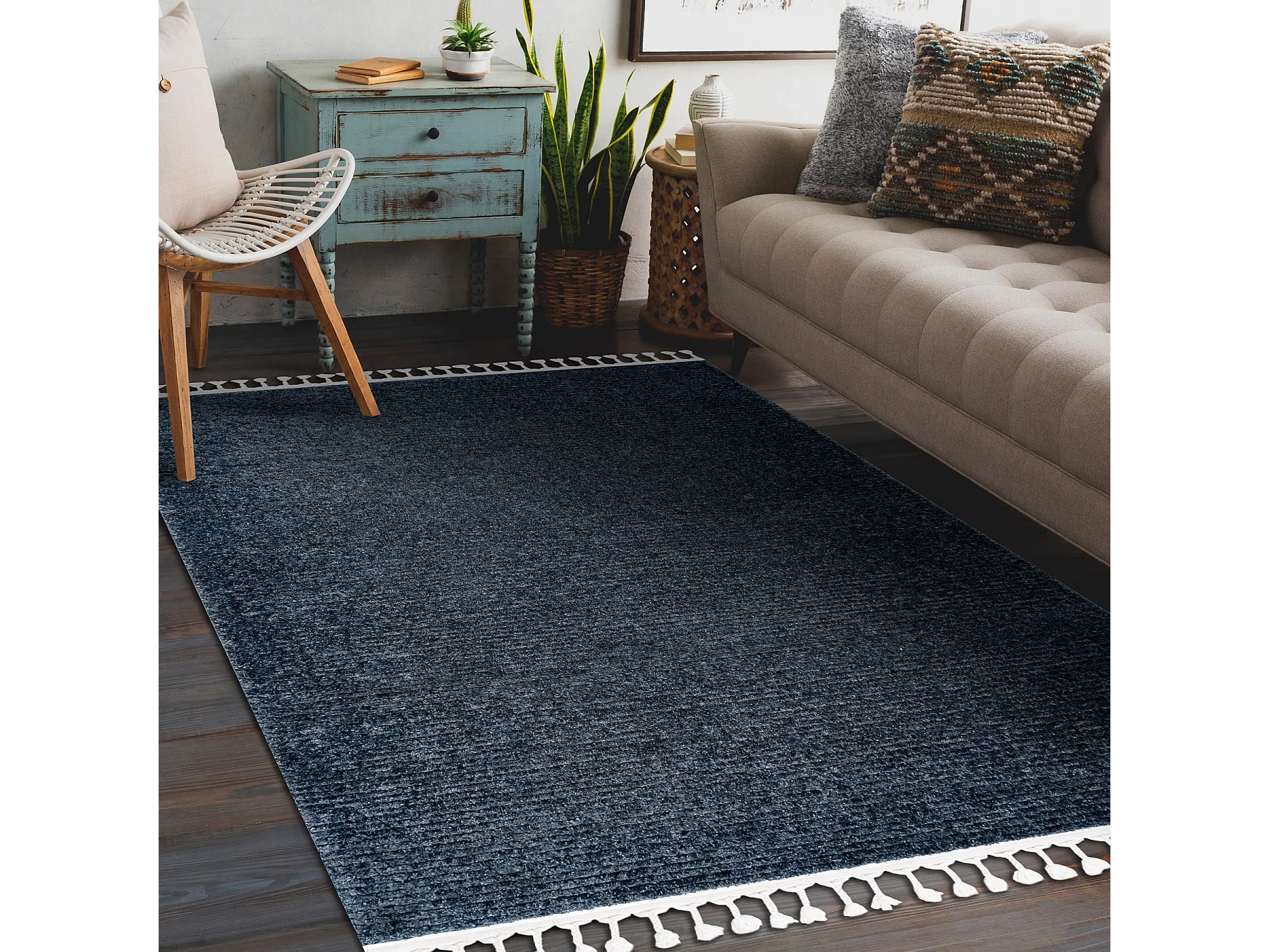 Tapis SEVILLA PC00B rayures bleu Franges berbère marocain shaggy 180x270 cm
