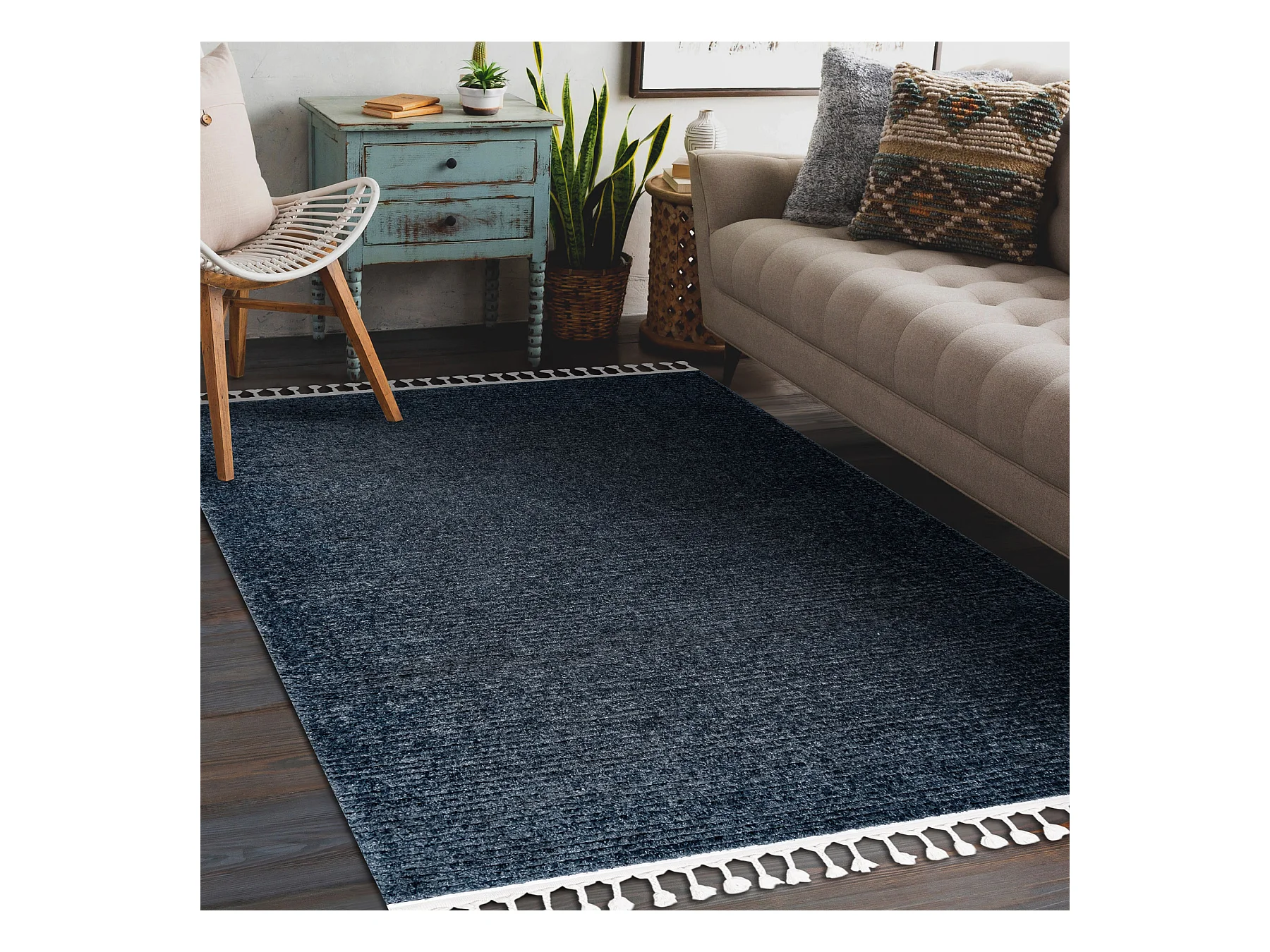 Tapis SEVILLA PC00B rayures bleu Franges berbère marocain shaggy 80x150 cm
