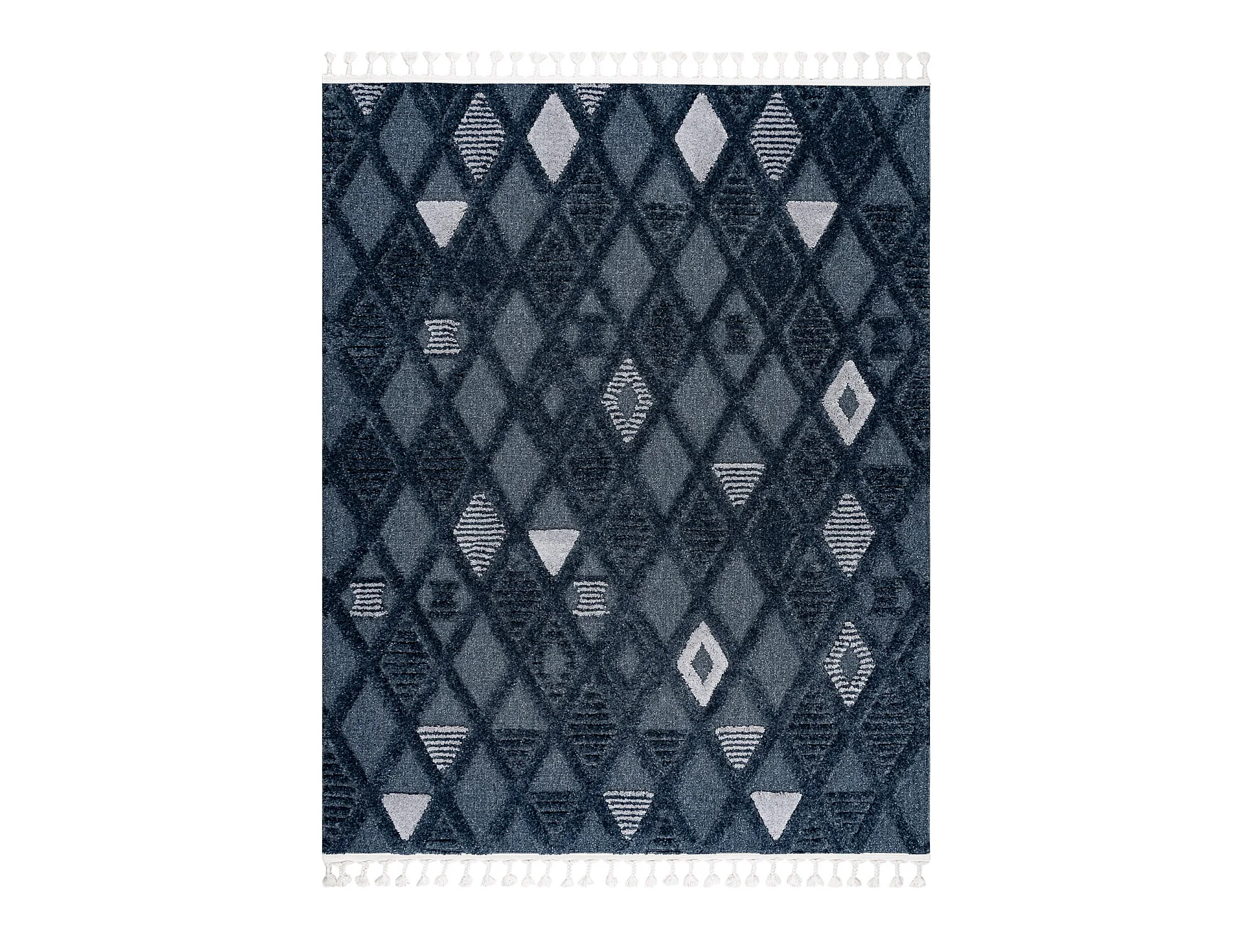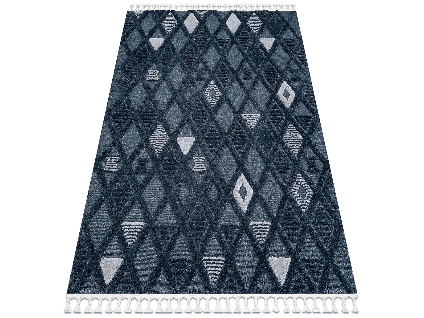 Tapis SEVILLA Y499B treillis, diamants bleu Franges berbère marocain 140x190 cm