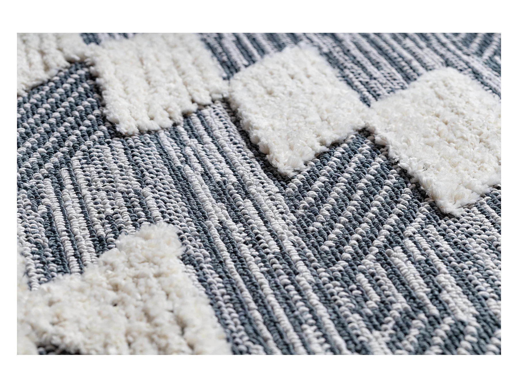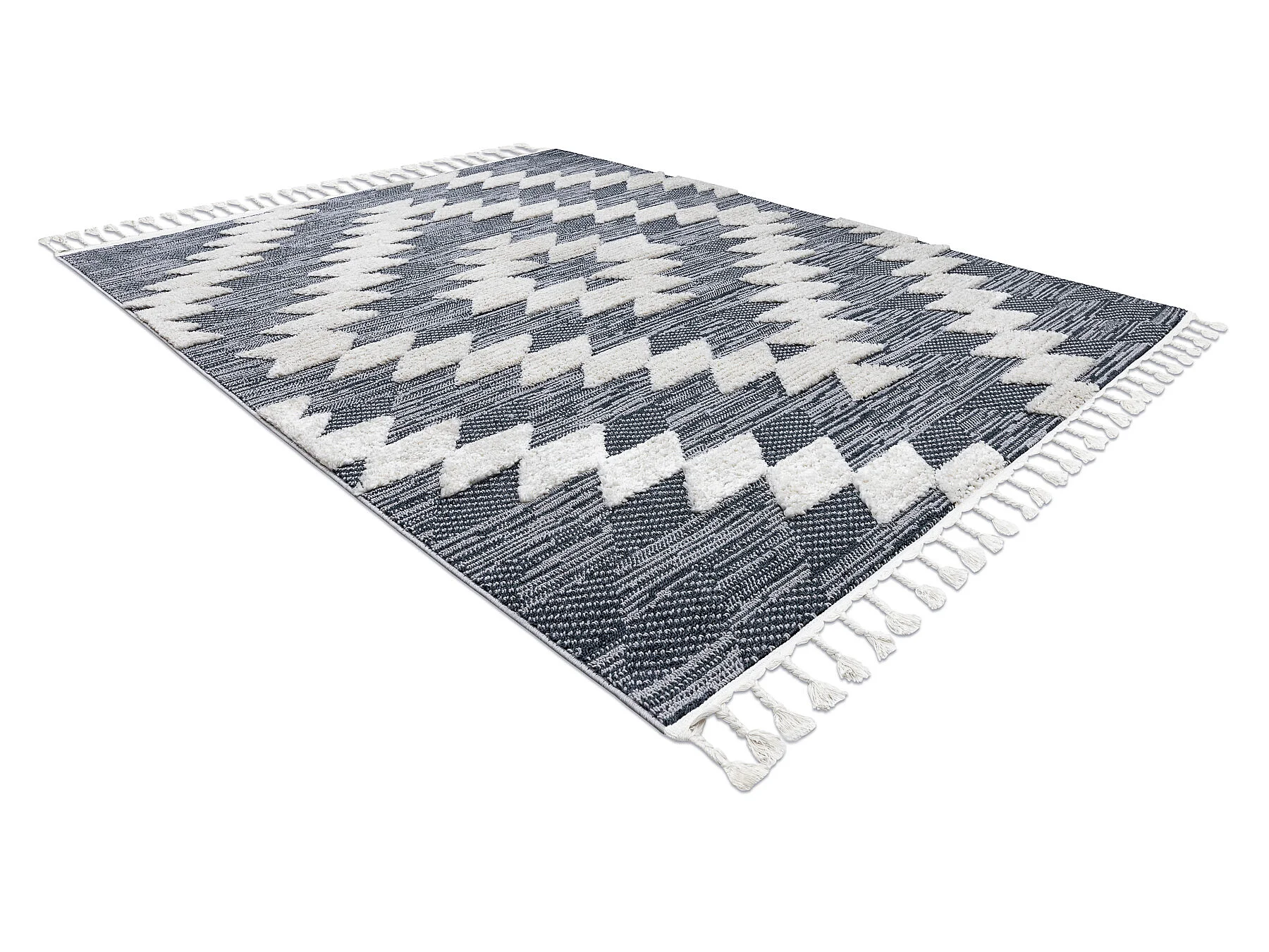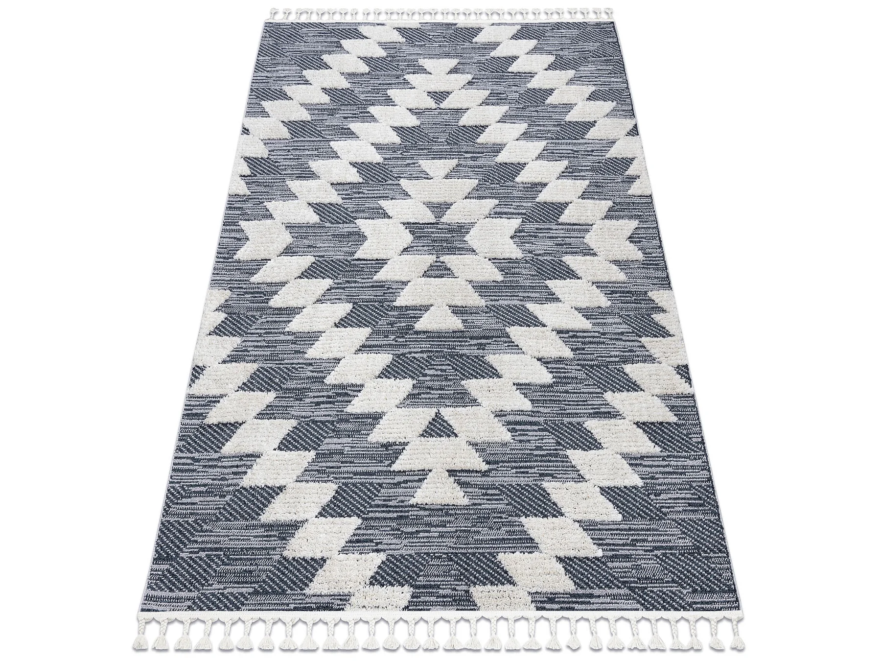 Tapis SEVILLA Z250A diamants bleu / gris Franges berbère marocain sha 140x190 cm
