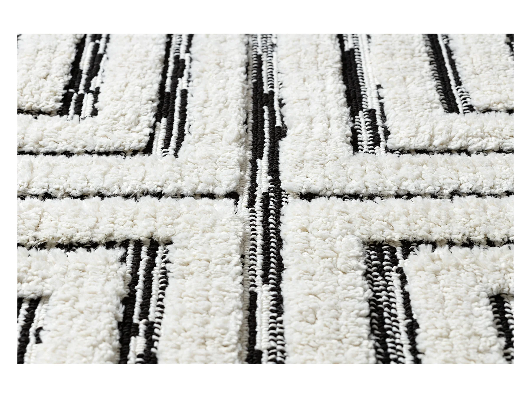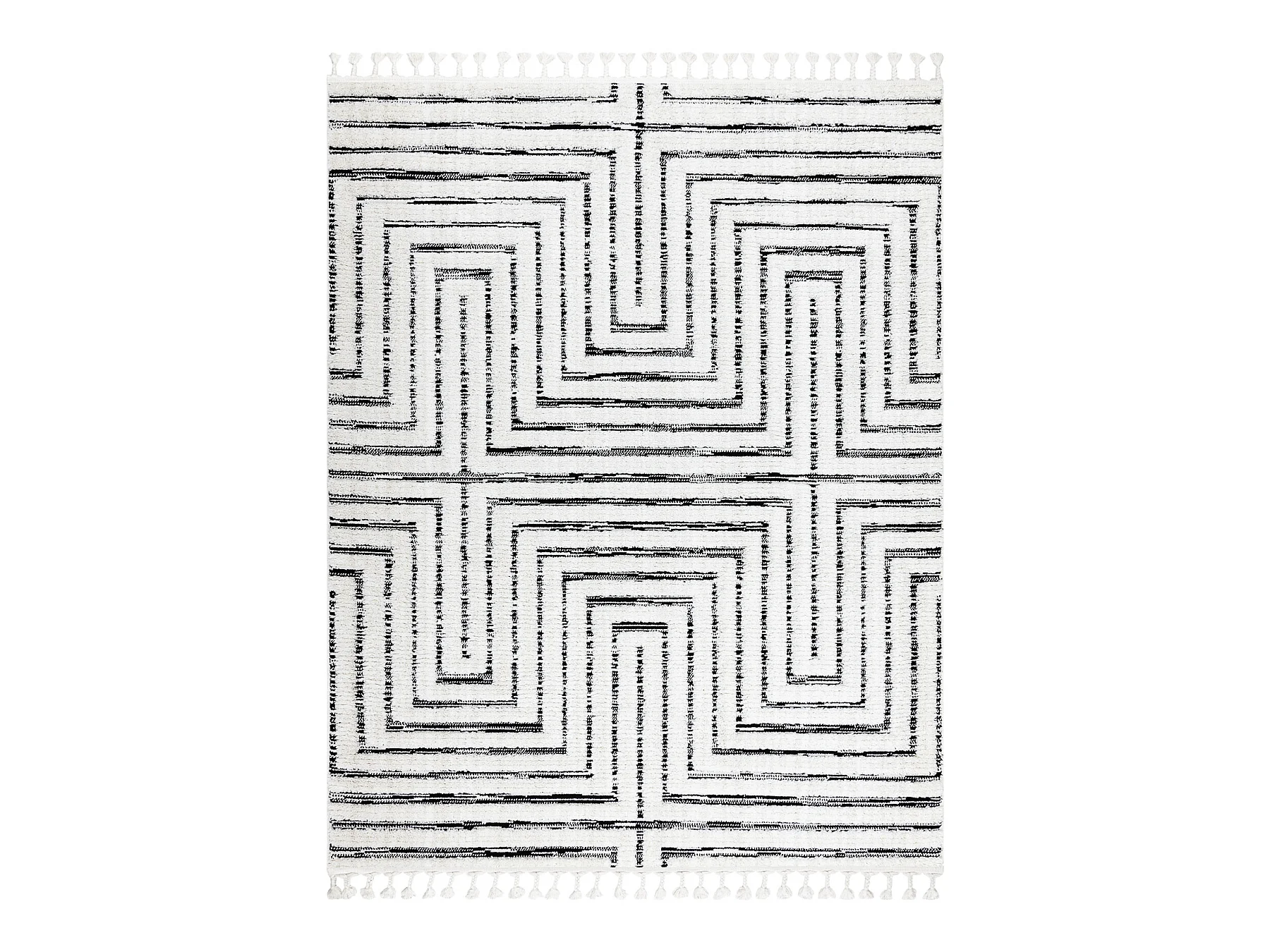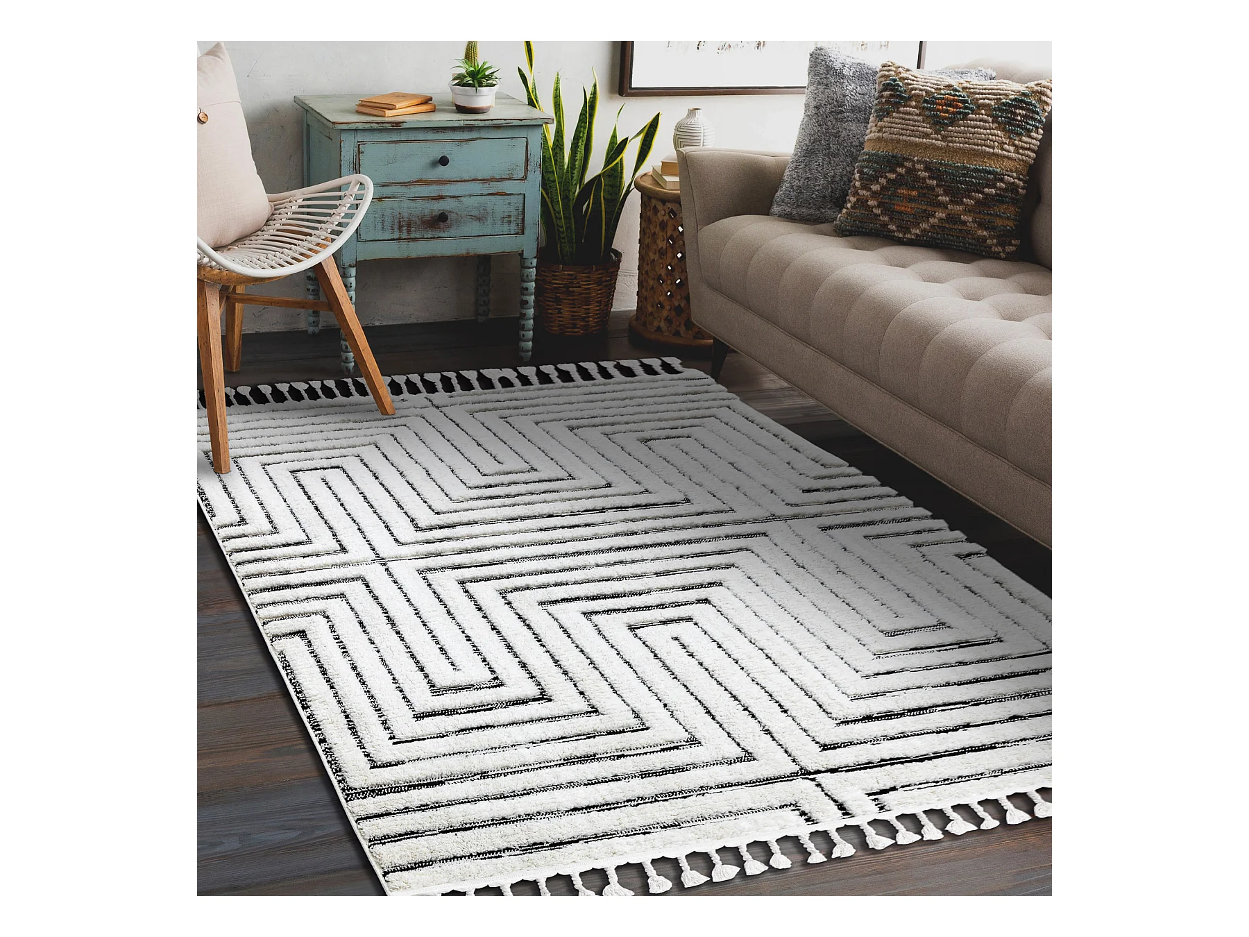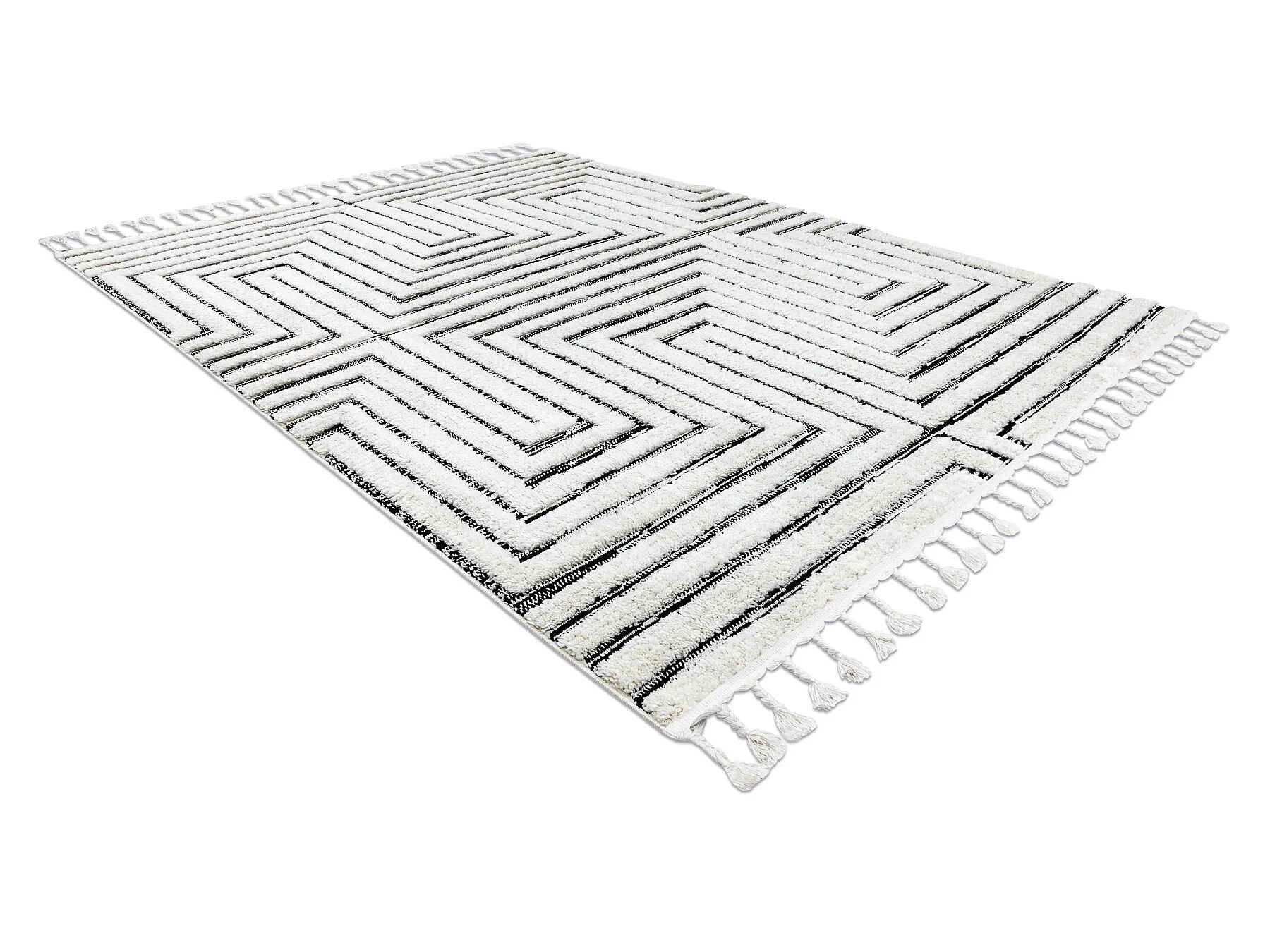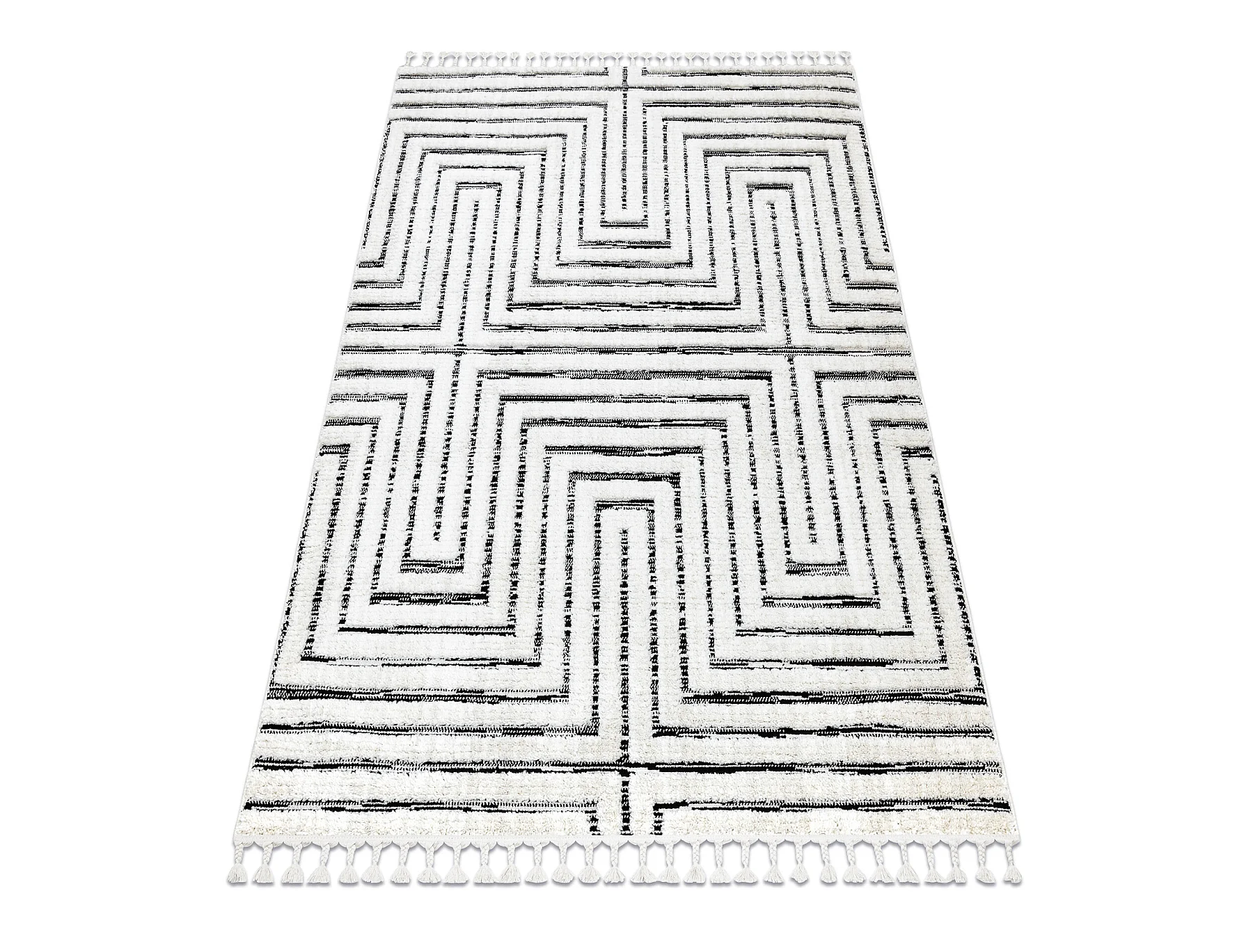 Tapis SEVILLA Z788B labyrinthe, grec blanc / anthracite Franges berbè 80x150 cm