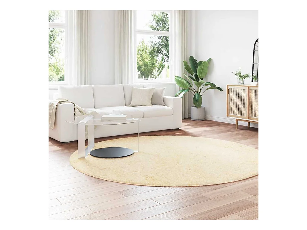 Tapis HUARTE à poils courts doux et lavable crème Ø 160 cm