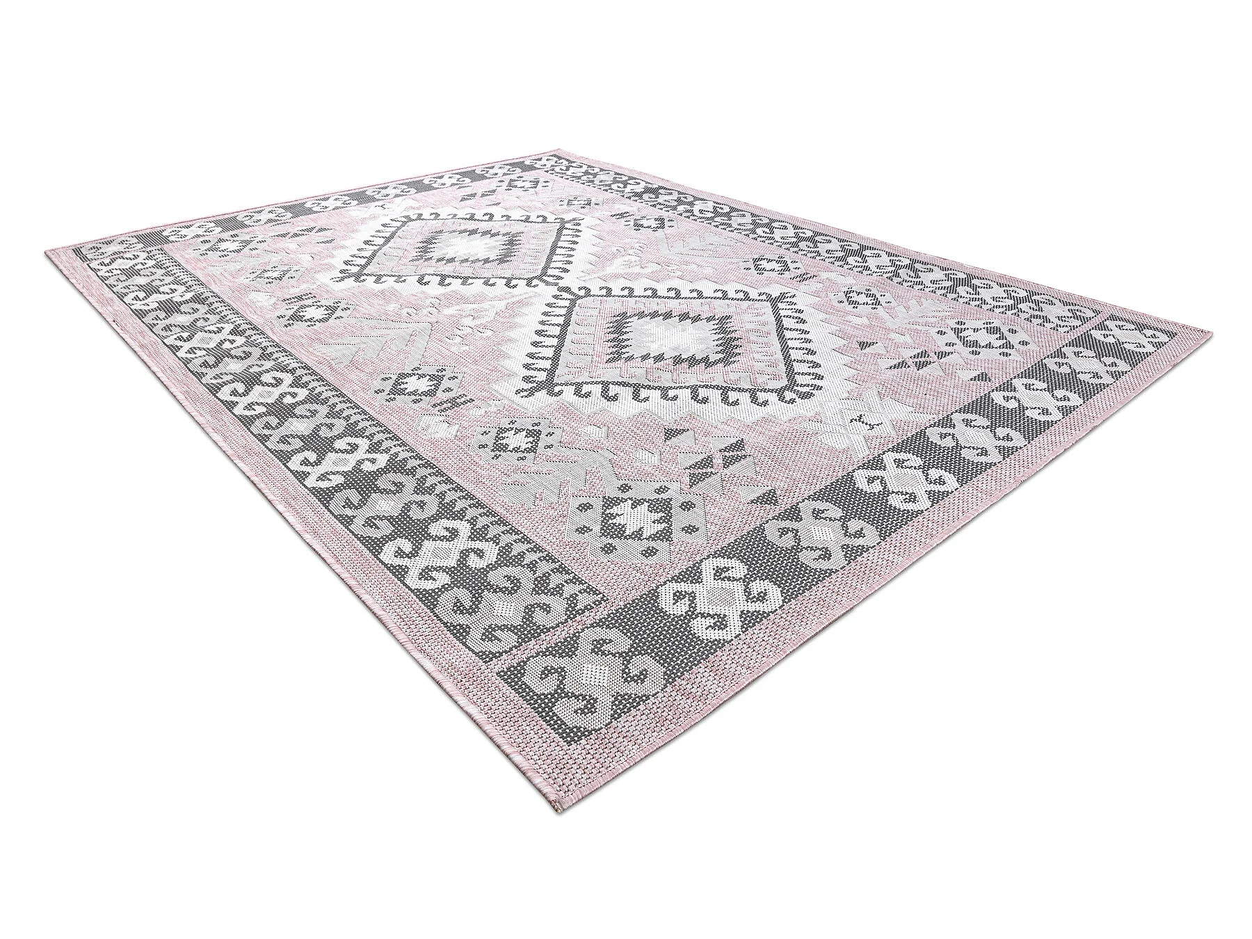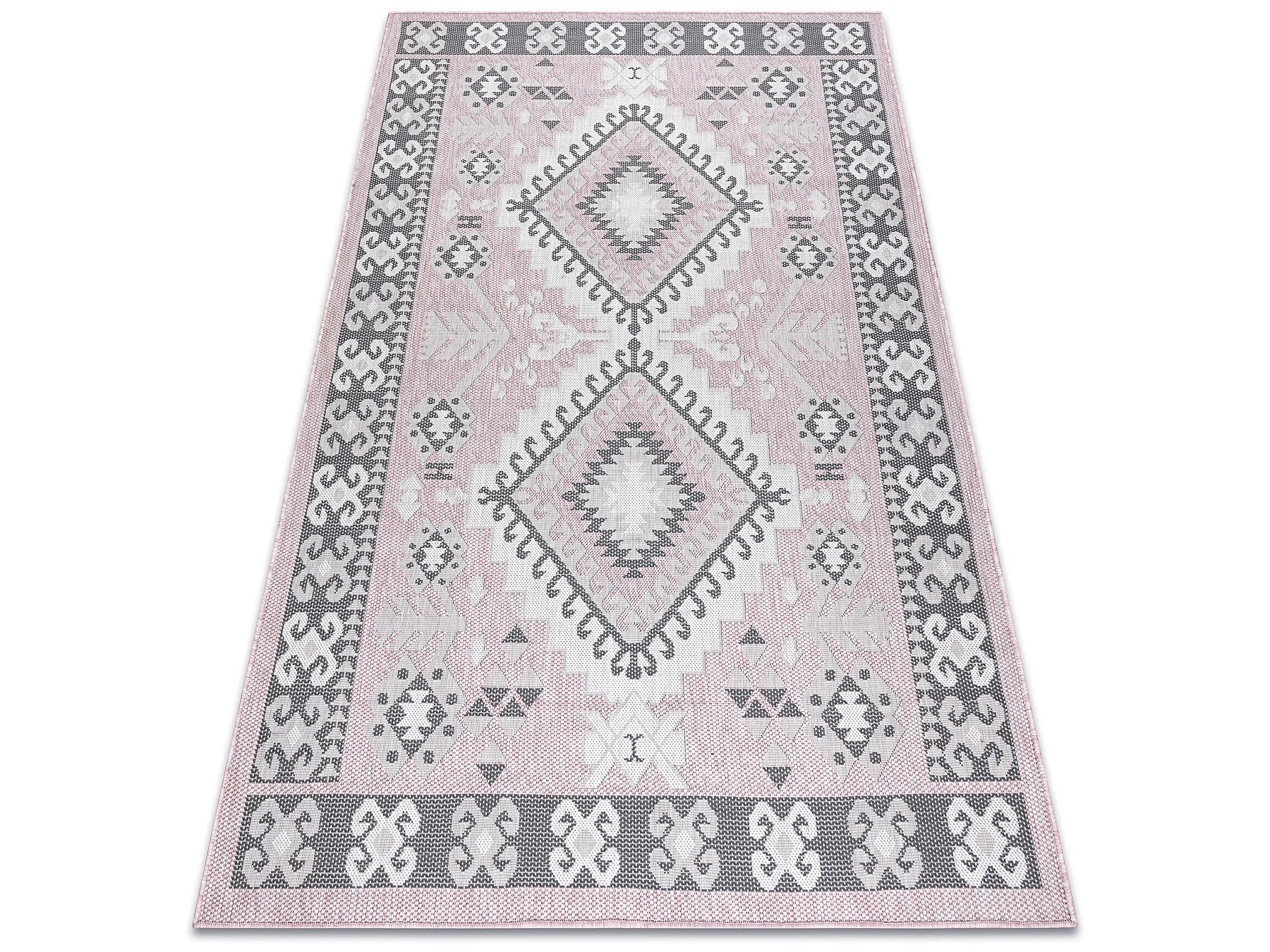 Tapis SIZAL SION aztèque 3007 tissé à plat rose / ecru 200x290 cm