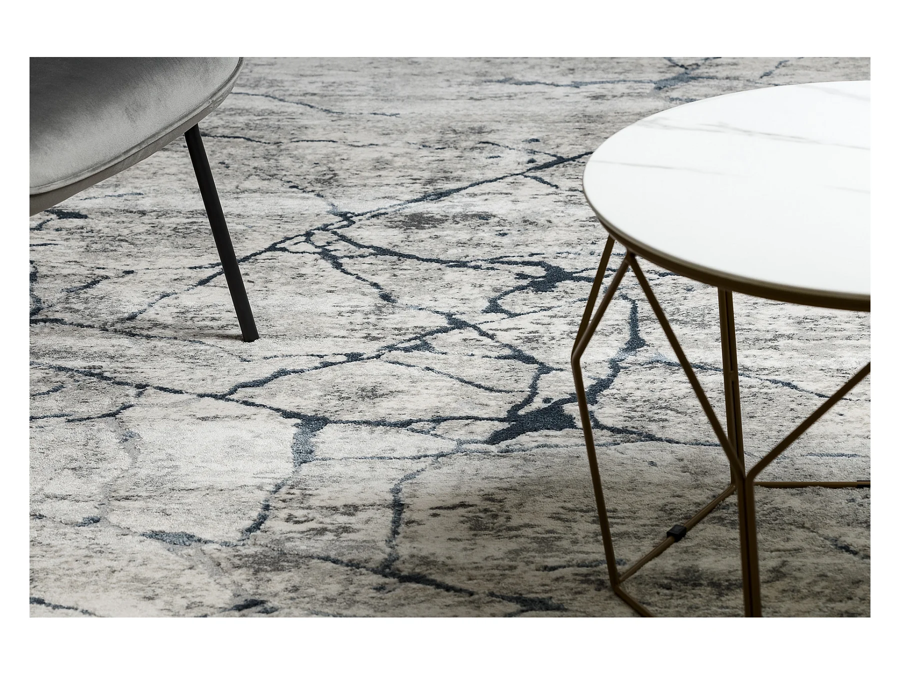 Tapis TULS structural, franges 51320 moderne, Marbre ivoire / bleu 280x370 cm