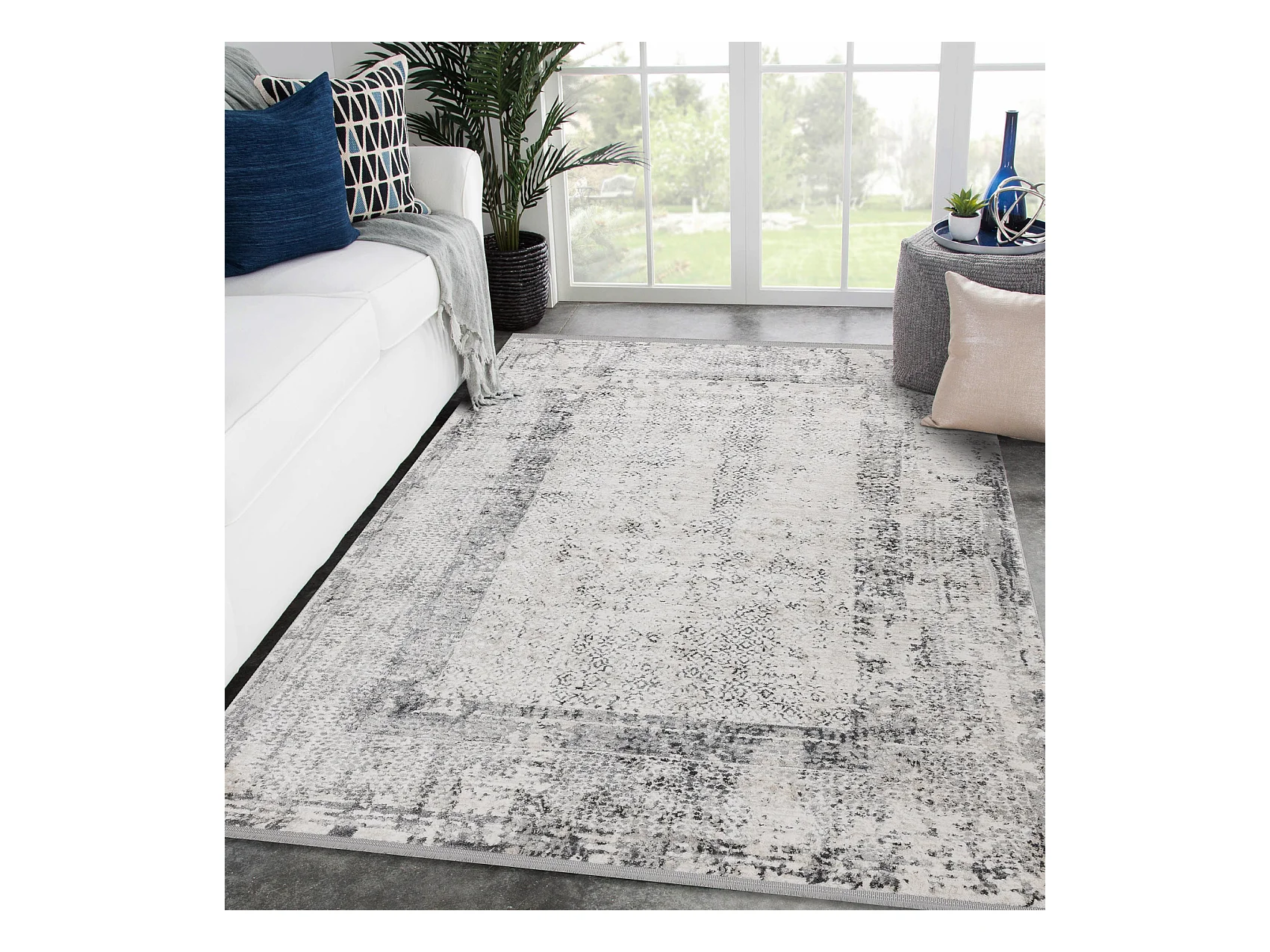 Tapis TULS structural, franges 51324 vintage, Cadre ivoire / gris 200x290 cm