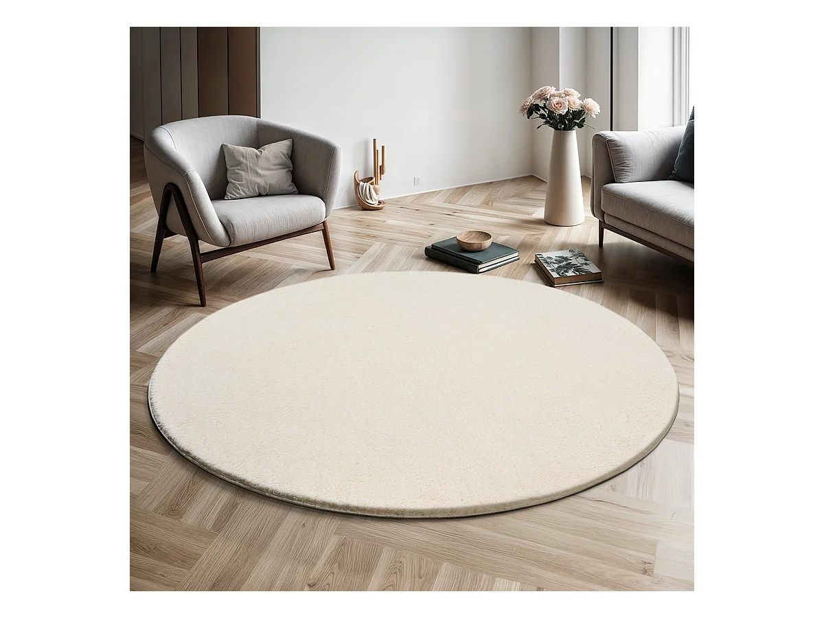 Tapis IZA poils courts style scandinave crème Ø 100 cm QBH26521