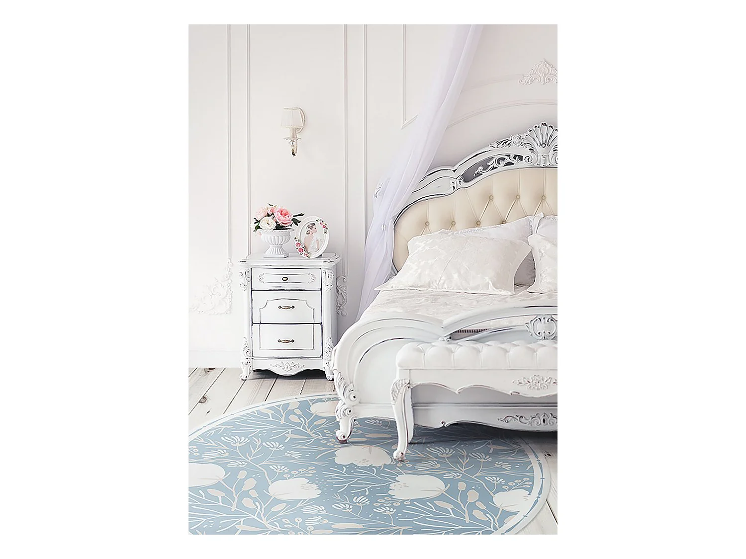 Tapis Vinyle 100cm Imperméable PVC Rond Salon Pour la Cuisine - Fleurs de campagne