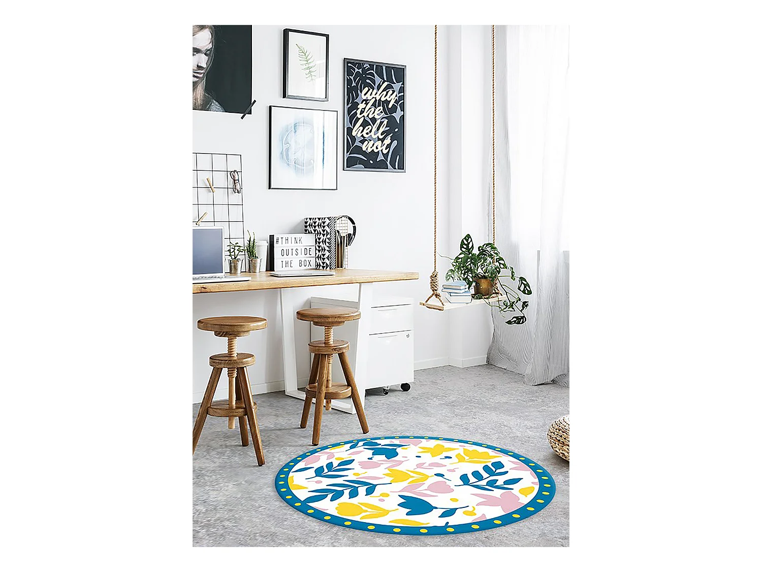 Tapis Vinyle 80cm Rond Salon Pour la Cuisine PVC Linoléum Imperméable - Fleurs abstraites