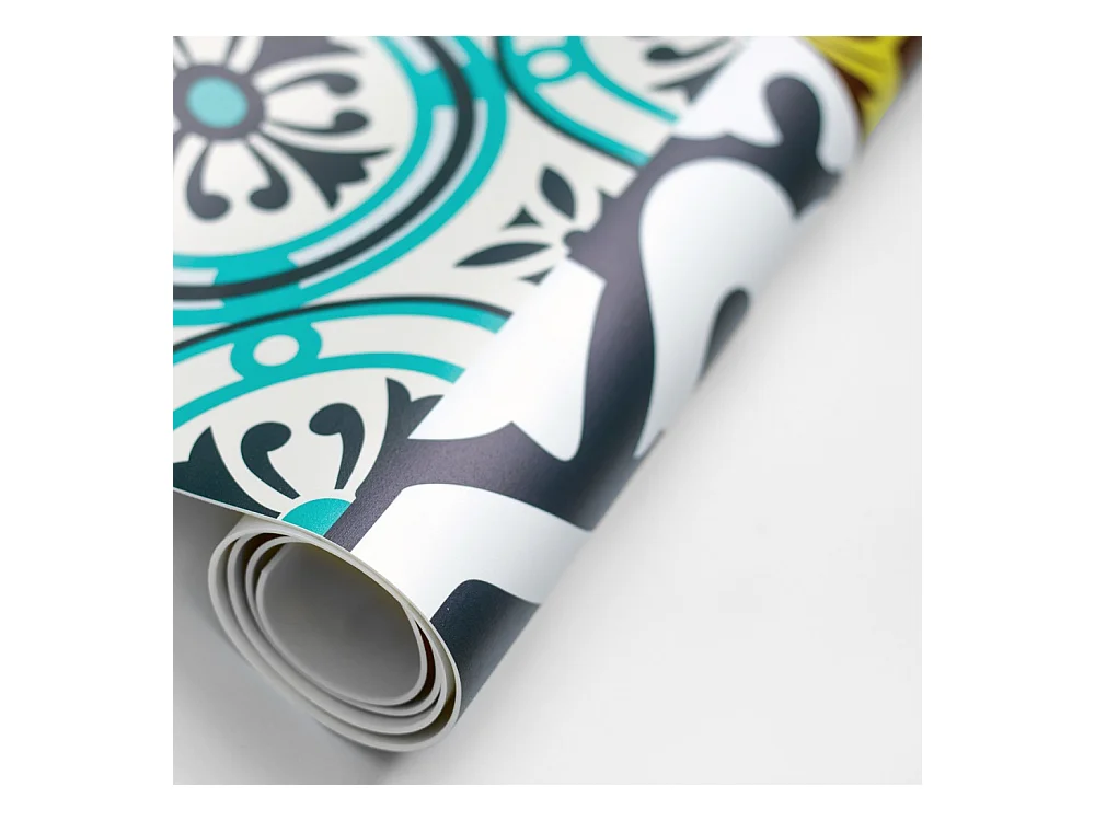 Tapis Vinyle 130cm Pour la Cuisine Rond Salon Imperméable PVC Linoléum - Mandalas floraux