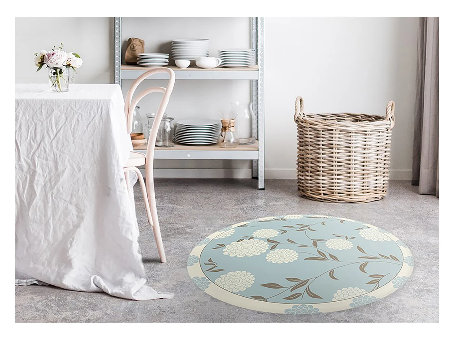 Tapis Vinyle 140cm Imperméable PVC Rond Salon Pour la Cuisine - Fleurs de campagne