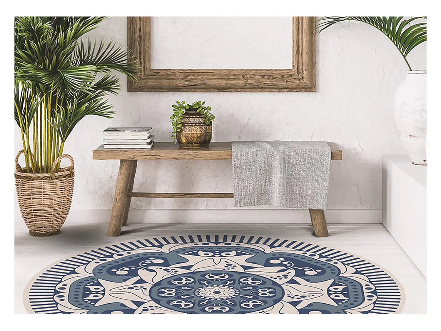 Tapis Vinyle 90cm Pour la Cuisine Rond Salon Imperméable PVC Linoléum - Mandalas floraux