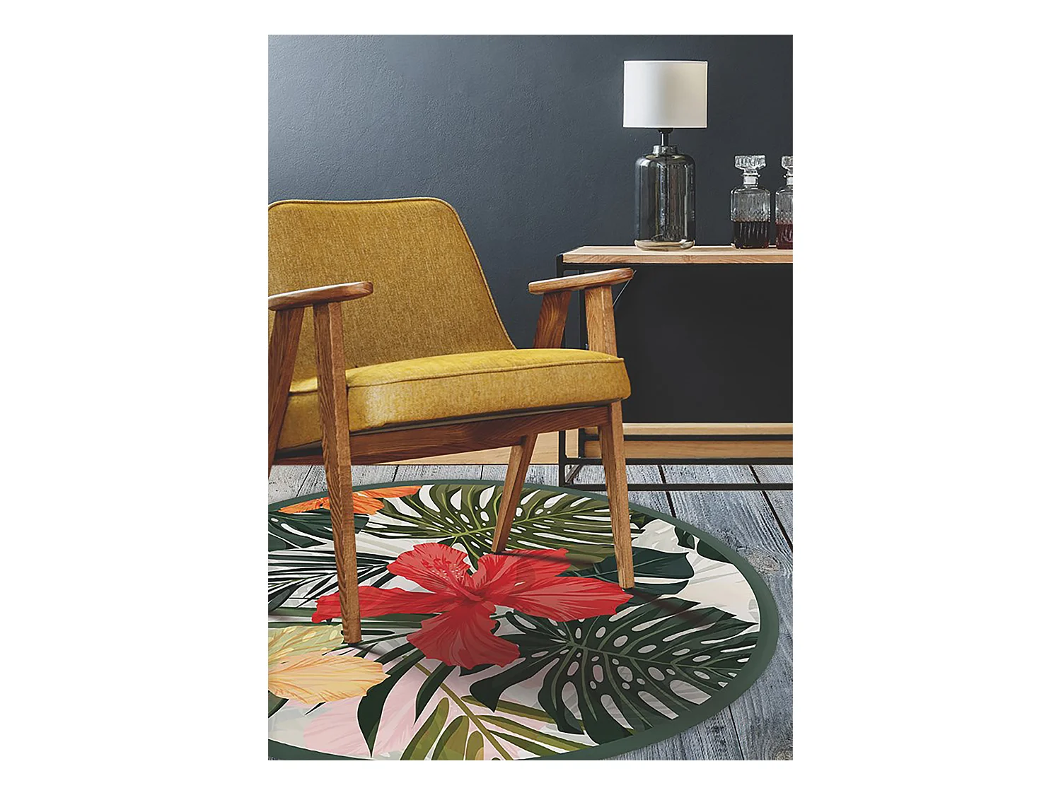 Tapis Vinyle 60cm Imperméable Pour la Cuisine PVC Salon Rond Linoléum - Fleurs du paradis