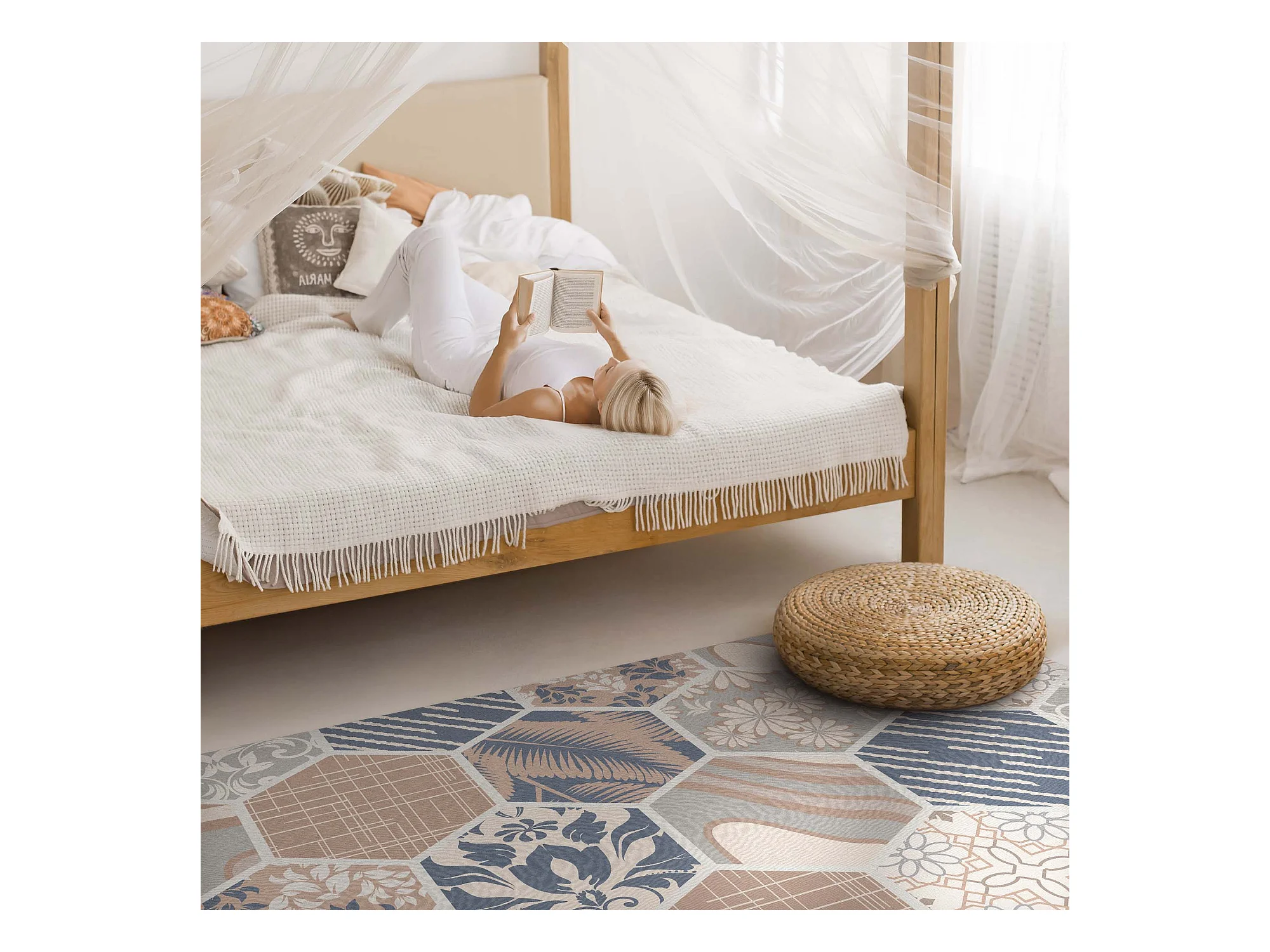 Tapis vinyle pour la maison, Moquette d'intérieur Carreaux boho hexagones hawaïens - 150x225 cm