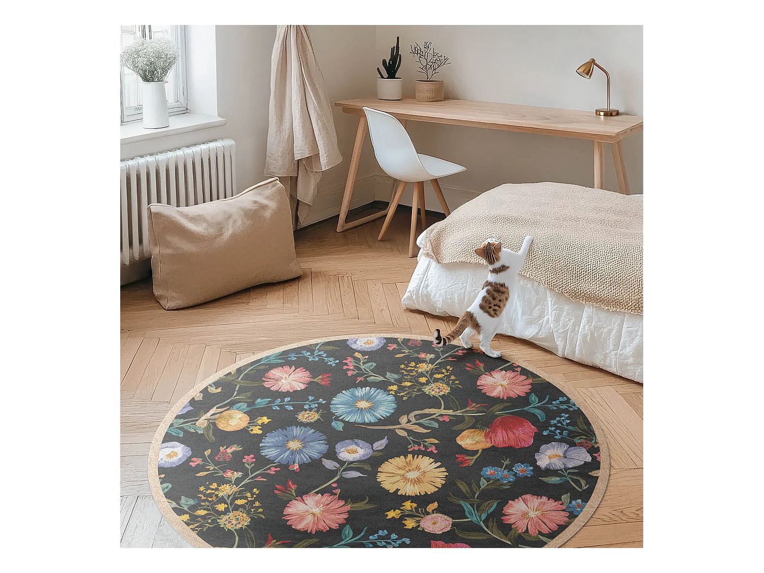 Tapis vinyle pour la maison, Moquette d'intérieur Fleurs sauvages belles plantes colorées dans un style boho vintage 100 cm