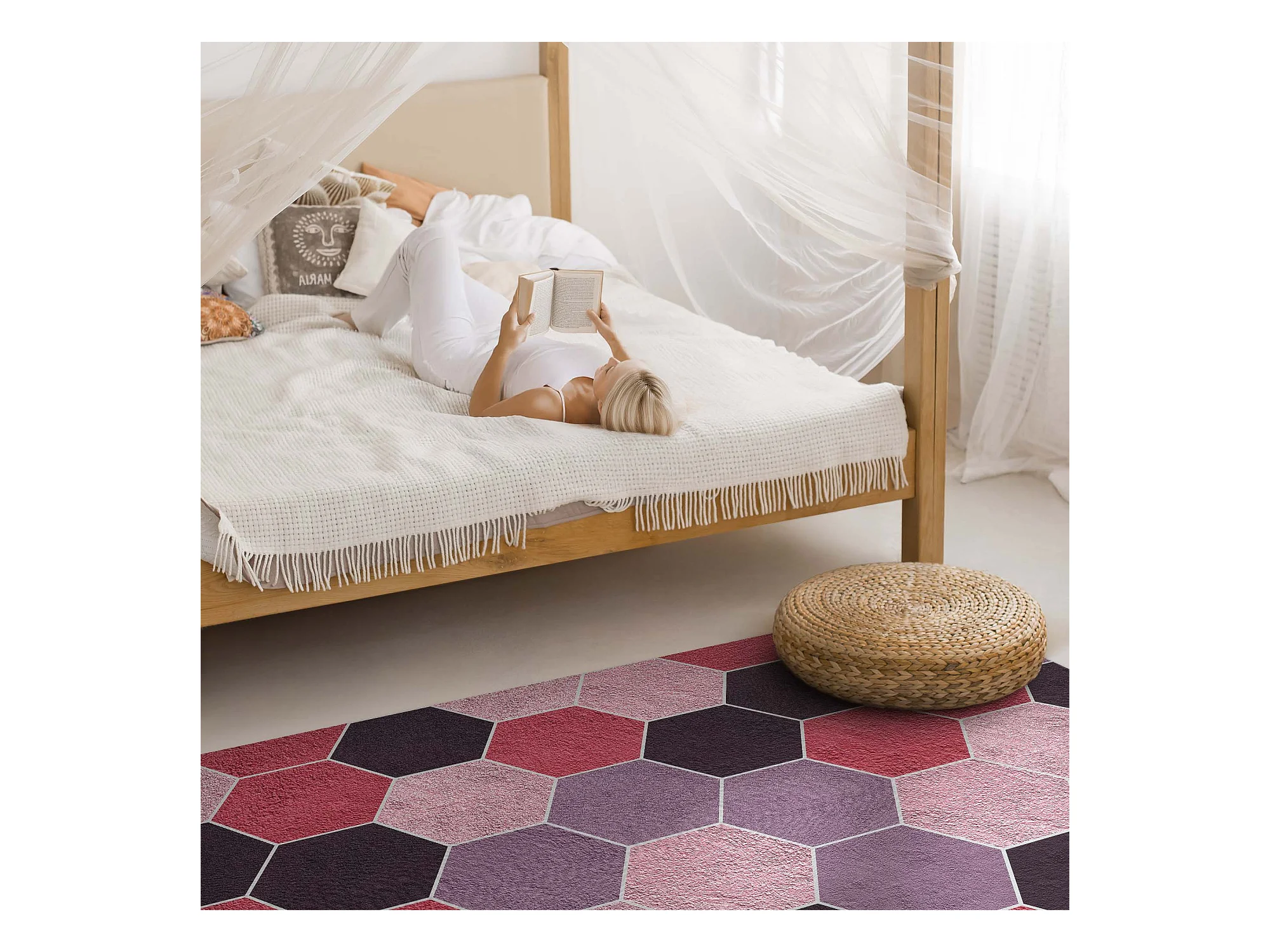 Tapis vinyle pour la maison, Moquette d'intérieur Hexagones en peluche avec motif géométrique régulier 120 cm