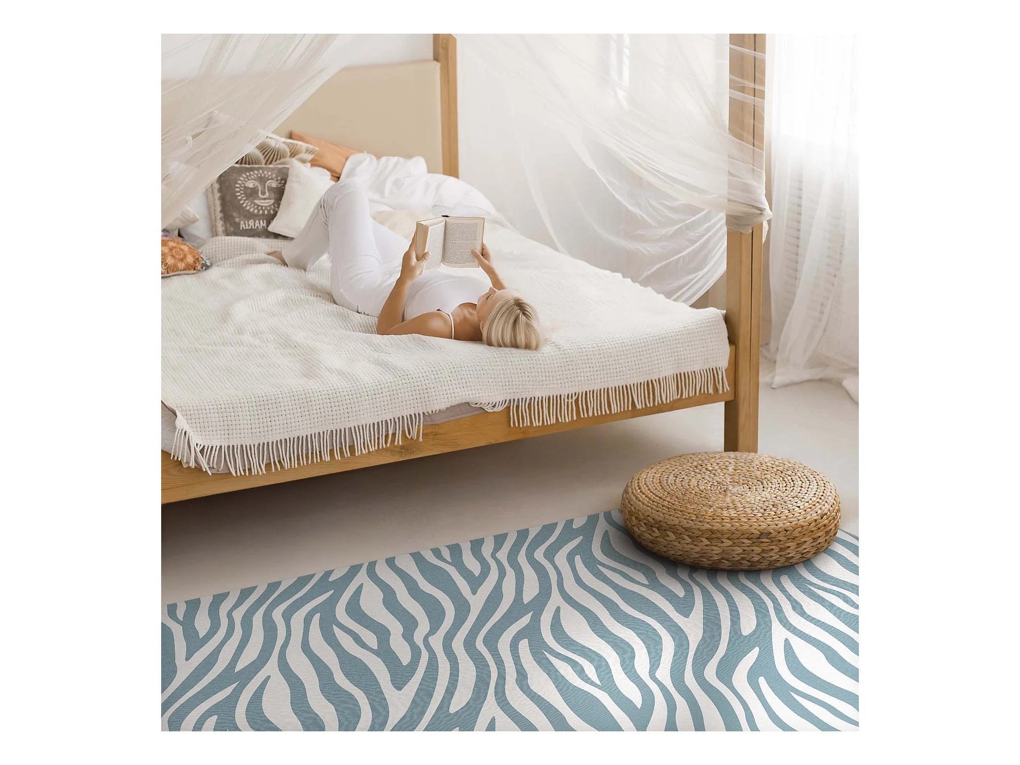 Tapis vinyle pour la maison, Moquette d'intérieur Vagues boho abstraites en bleu pastel - 150x225 cm