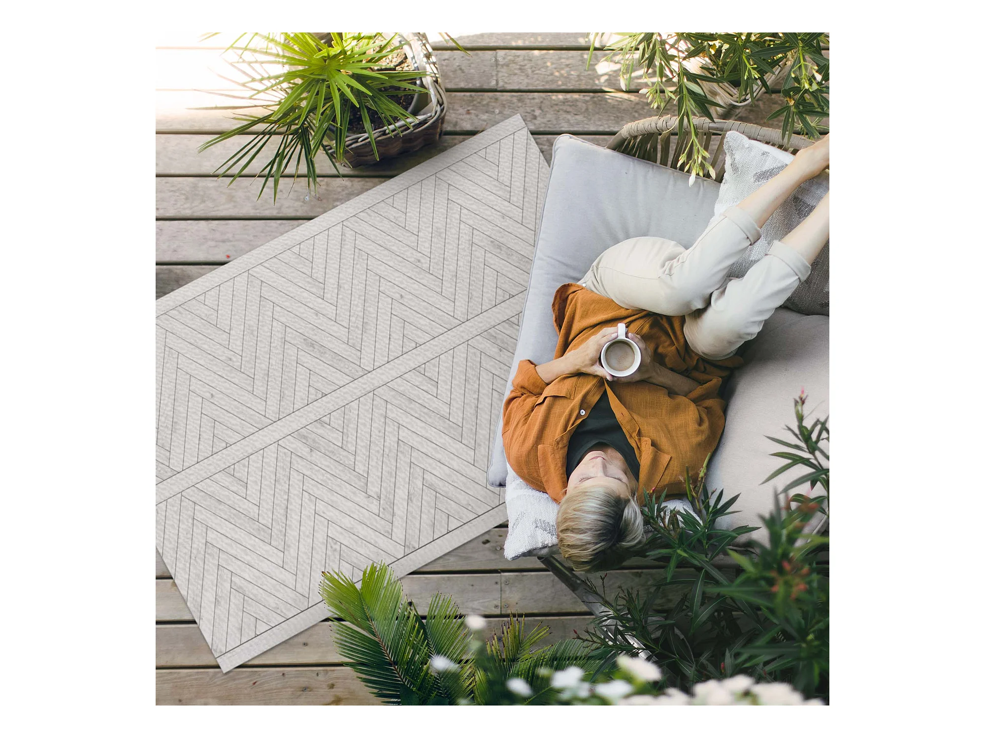 Tapis vinyle pour l'extérieur, Moquette d'extérieur Planches à chevrons - 150x225 cm