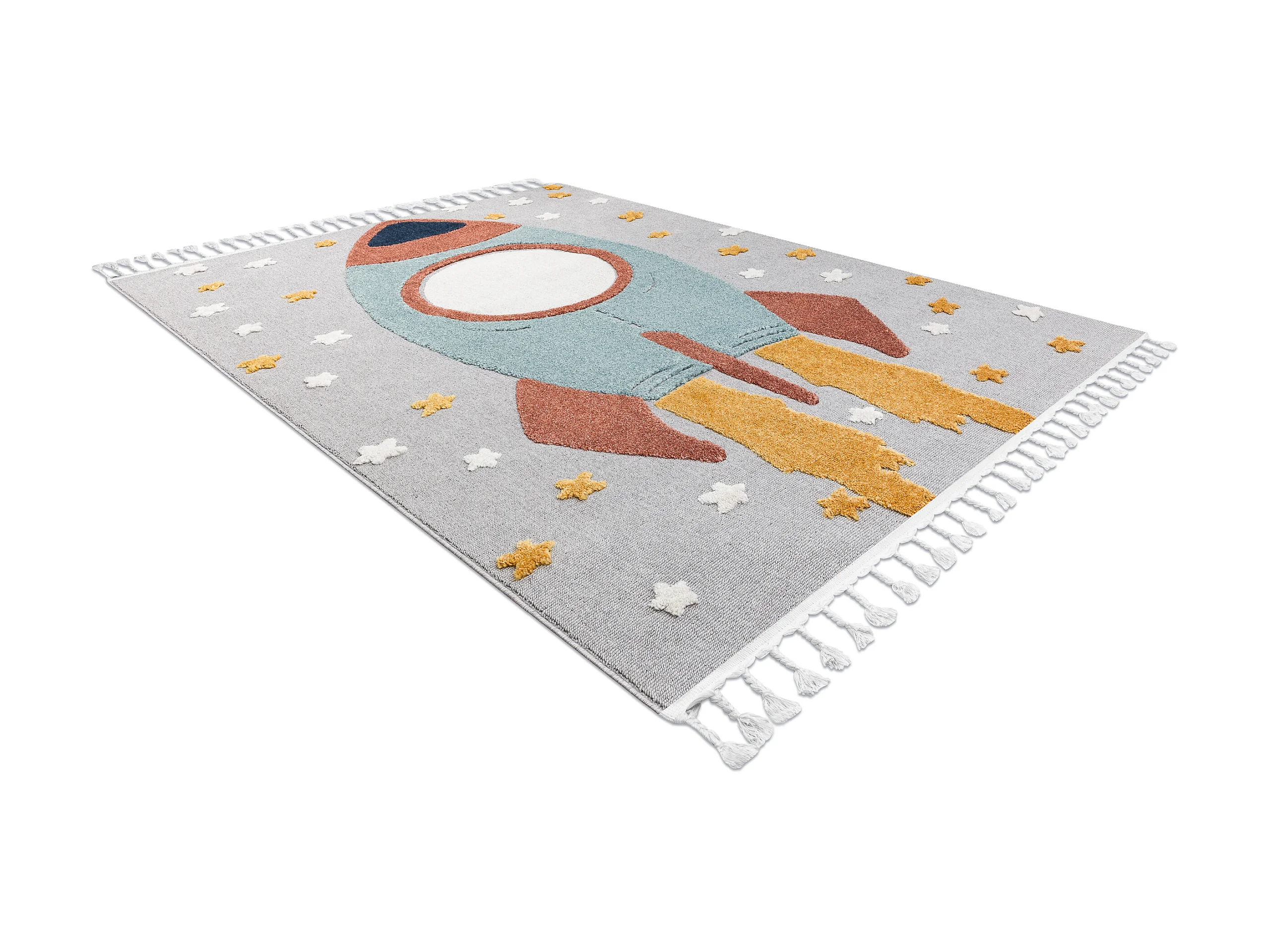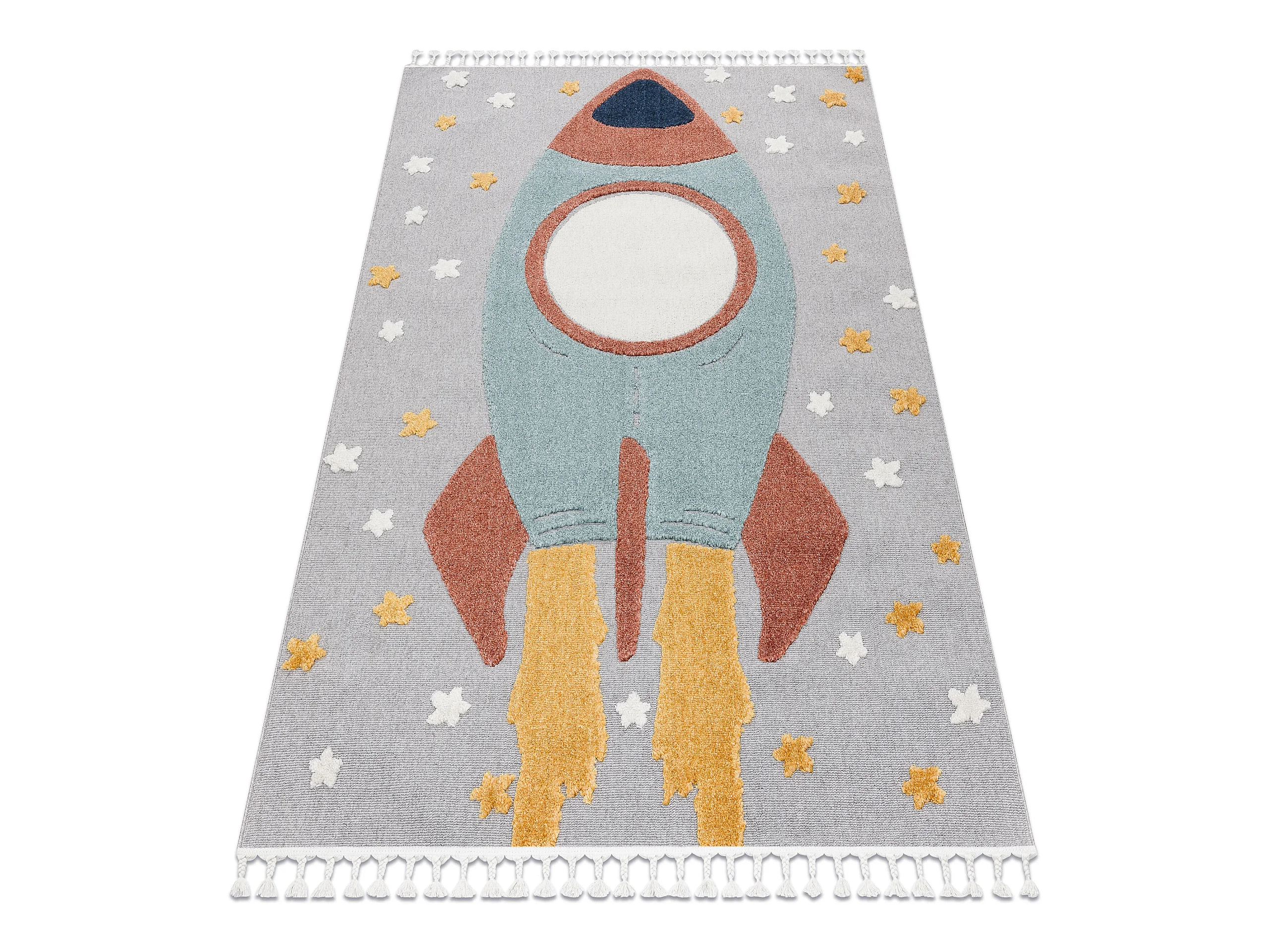 Tapis YOYO GD55 gris / bleu - étoiles, la roquette en peluche pour en 160x220 cm
