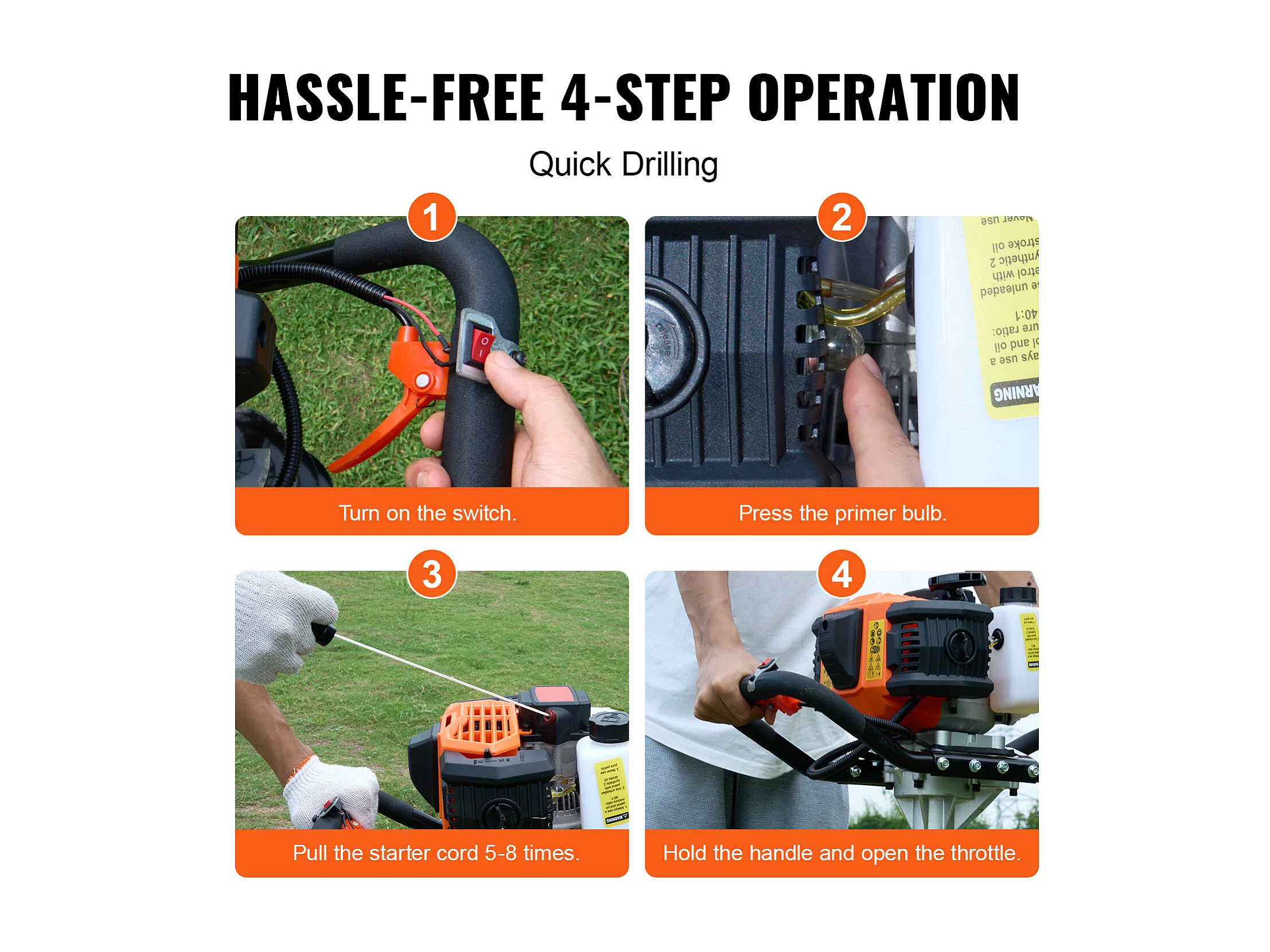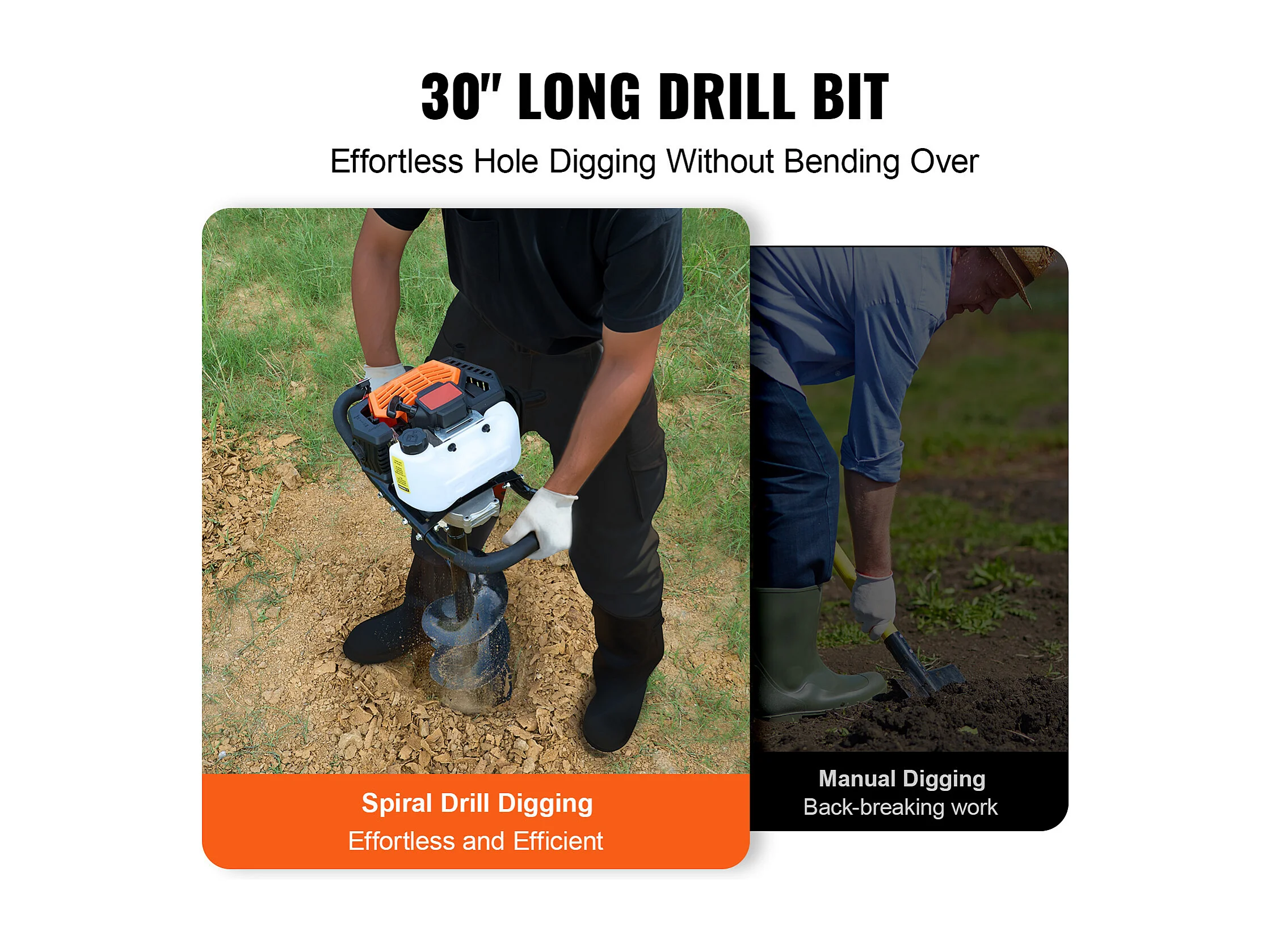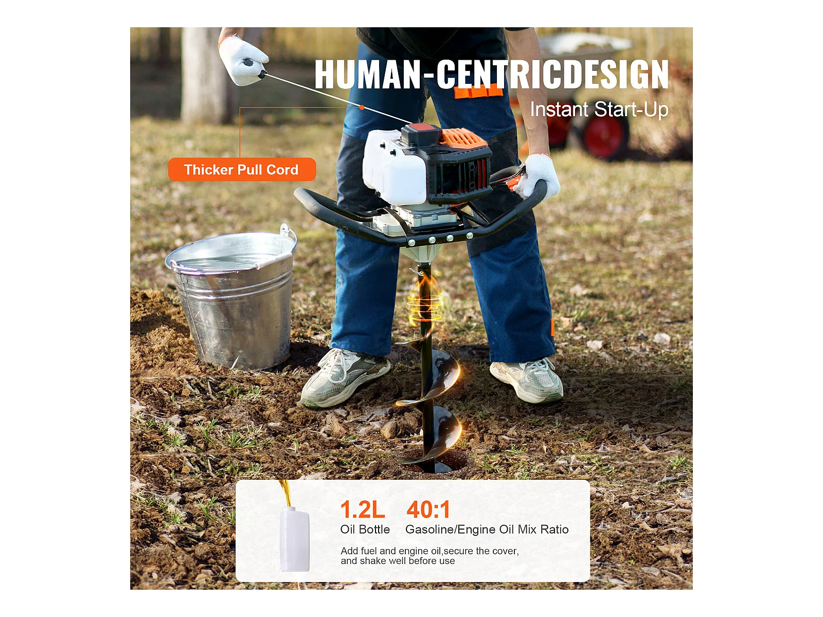 Tarière À Gaz SucceBuy 52CC 1450W Avec Forets De 15.2cm Et 25.4cm Et 3 Tiges D'Extension